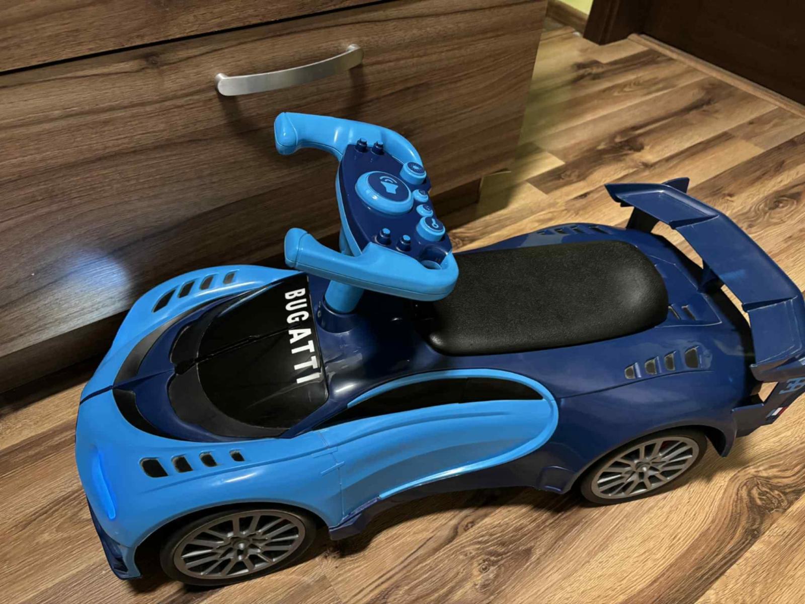 Odrážadlo Bugatti nepoužívané len rozpálené. Hraje svieti. Predávame s originálnou krabicou. Vhodné pre deti do 3r