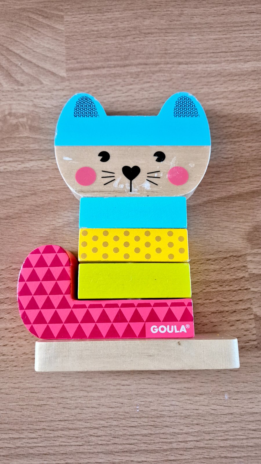 Predám drevenú skladačku v tvare mačky, zn. Goula. Bežné známky opotrebovania, škrabance, viď. foto.