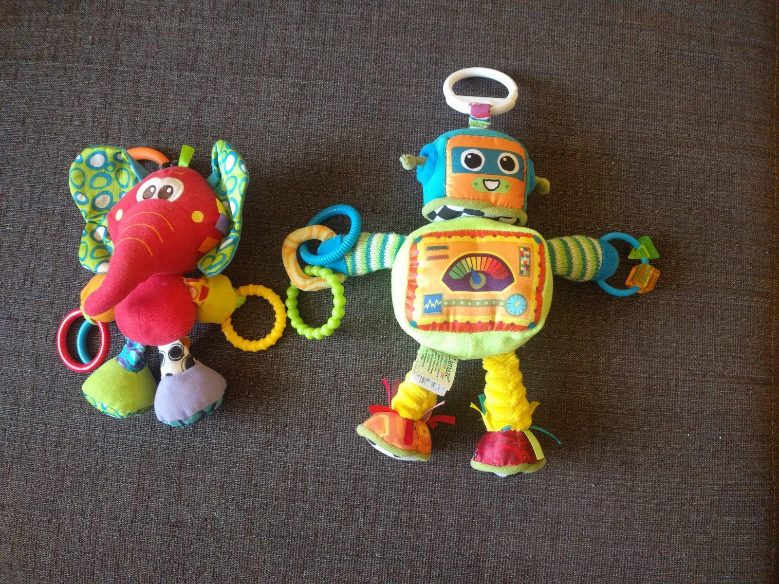 Veselý robot a sloník, pri dotyko vydávajú rôzne zvuky, u nás veľmi obľúbené hračky. Cena za oba bez pošty.