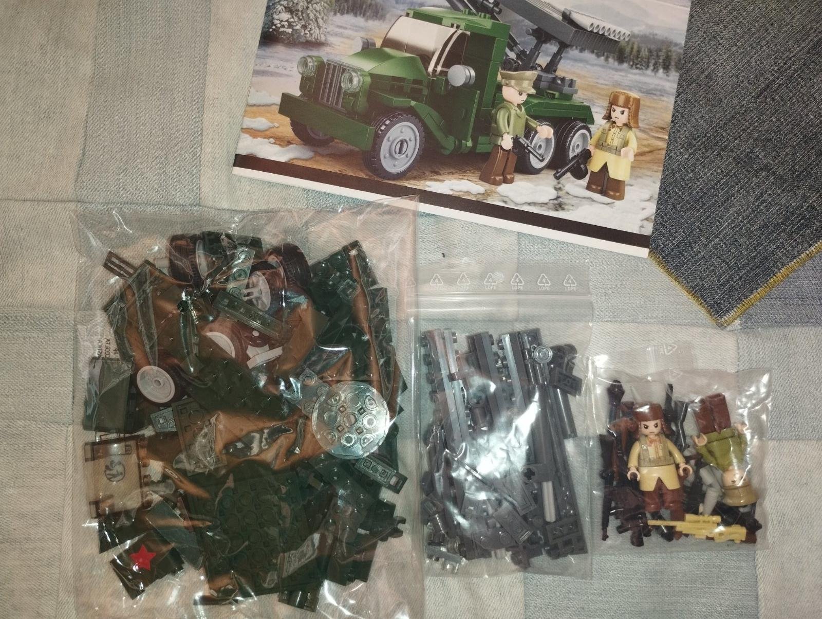Stavebnica sluban Hrane vojenske auto. kompatibilna s lego. Plan + krabica.