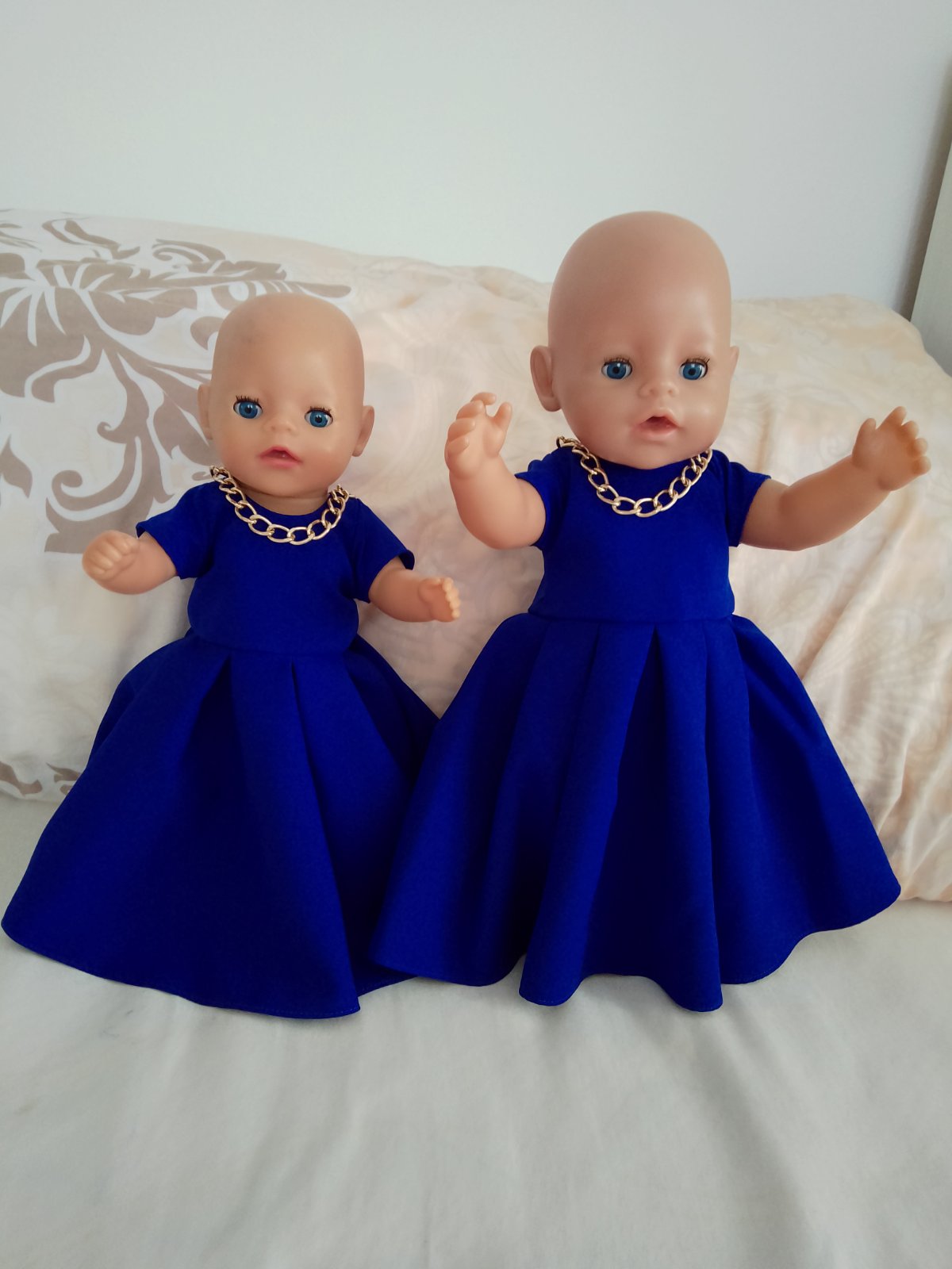 oblečenie je šité, nehrané. Vhodné pre bábiku baby born 43 cm, staršiu sestričku 43cm a baby born 36cm.