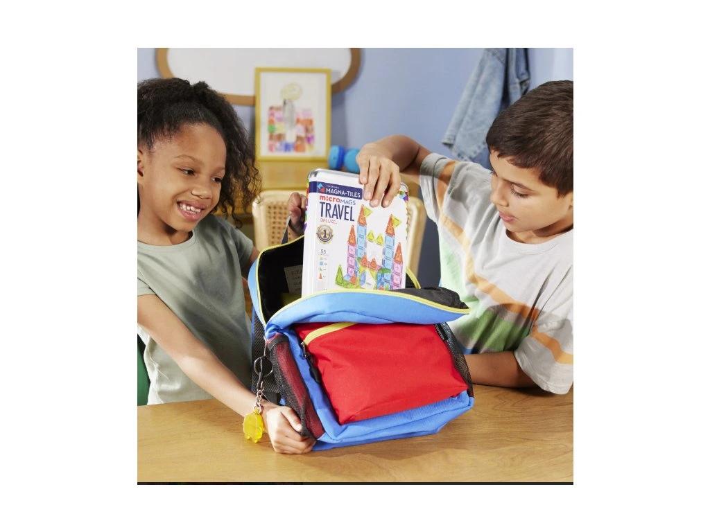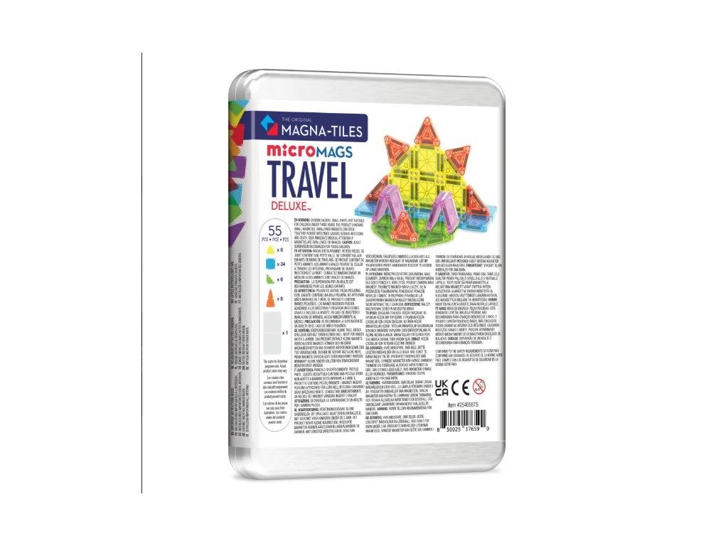 Či už ste na ceste autom, v lietadle, v reštaurácii alebo na pikniku – s MAGNA-TILES® Travel Set Deluxe sa dobrodružstvo nikdy nekončí. Táto 55-dielna prenosná stavebnica s miniatúrnymi dielikmi microMAGS je navrhnutá pre veľkú zábavu v malom formáte. S praktickým plechovým puzdrom sa môžu deti hrať všade, kde ich napadne!
