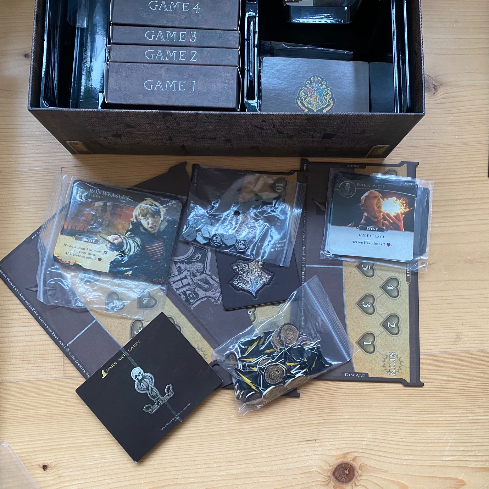 Predám spoločenskú hru Harry Potter - Boj o Rokfort. Hraná 3 x. Je to krásna kartová kooperatívna hra, v ktorej hráči spoločnými silami bránia Rokfortskú strednú školu čarodejnícku pred zlosynmi. Hráči v hre hrajú za známe postavy - Harry, Ron, Hermiona a Neville. Každá z nich disponuje vlastným balíčkom kariet, ktorý si v priebehu hry vylepšujete, učíte sa nové kúzla a získavate cenné artefakty. Inými kartami sa liečite alebo útočíte na nepriateľov v snahe zabrániť ich temnému pôsobeniu. A iba spoločne možete, tak ako Harry a jeho priatelia, odvrátiť zlo! Hra je pre 2-4 hráčov, od 11 rokov. Návod v angličtine. Pôvodná cena 59,99 eur.