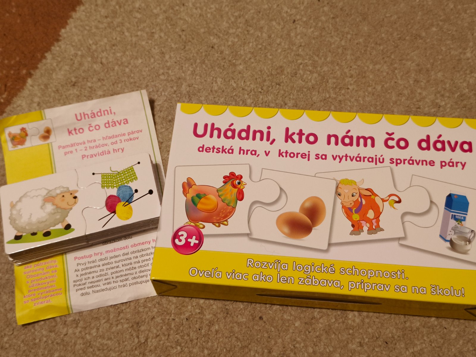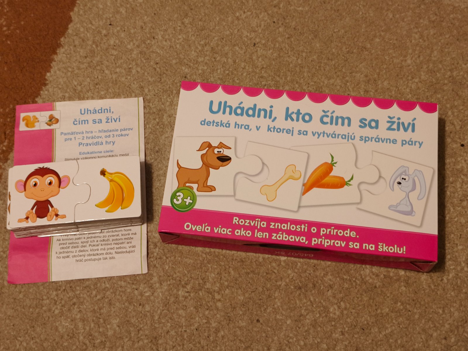 Cieľ hry: Pospájať kartičky do správnych párov potravín a produktov, ktoré sa z nich vyrábajú (napr. kukurica a popcorn).
