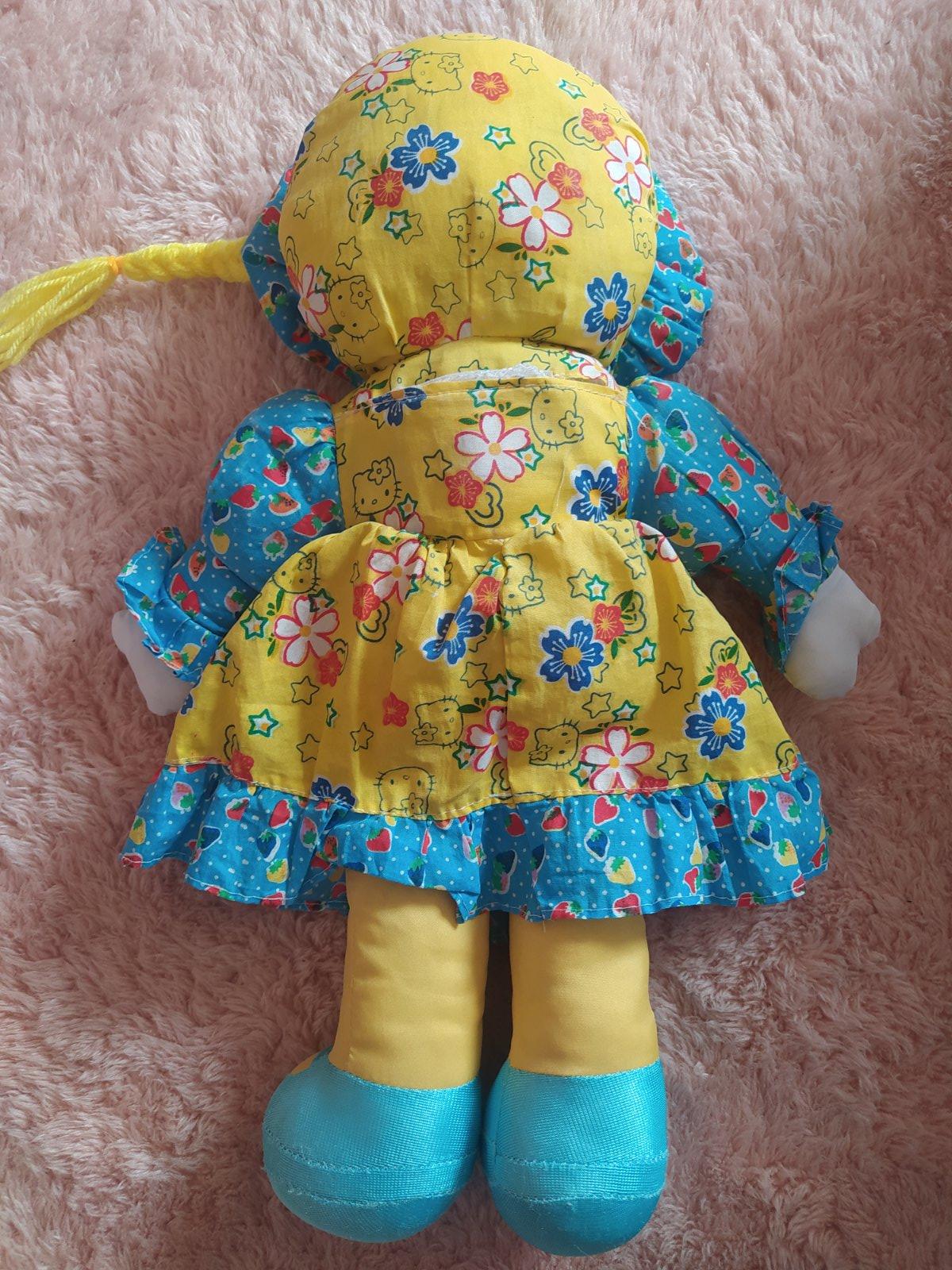 Látková, kvalitne prepracovaná, prateľná bábika bez poškodení, len mierne škrabance na plaste. Mnoho rôznych textúr, šušťavých prvkov, hrkálok, krúžkov na podporu úchopu a jemnej motoriky. Dieťatko...