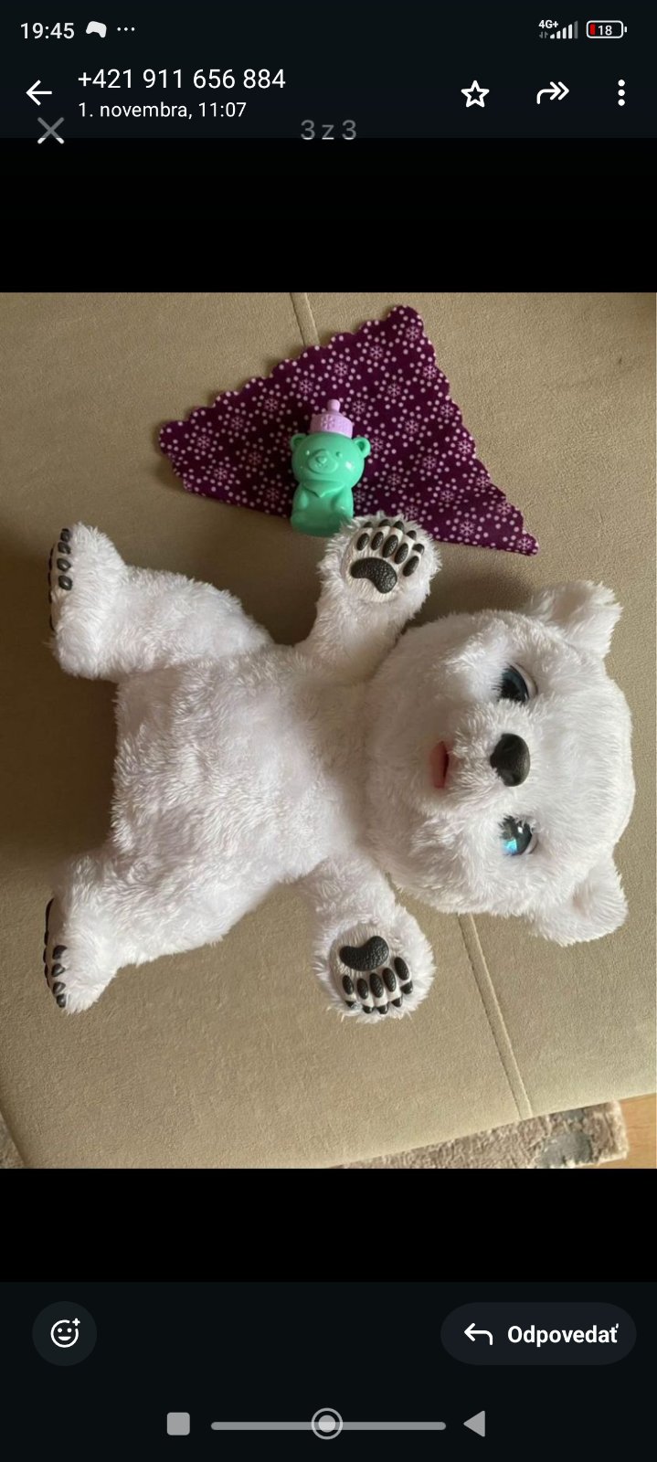 Ľadový plyšový medvedík, skoro ako nový, plne funkčný.