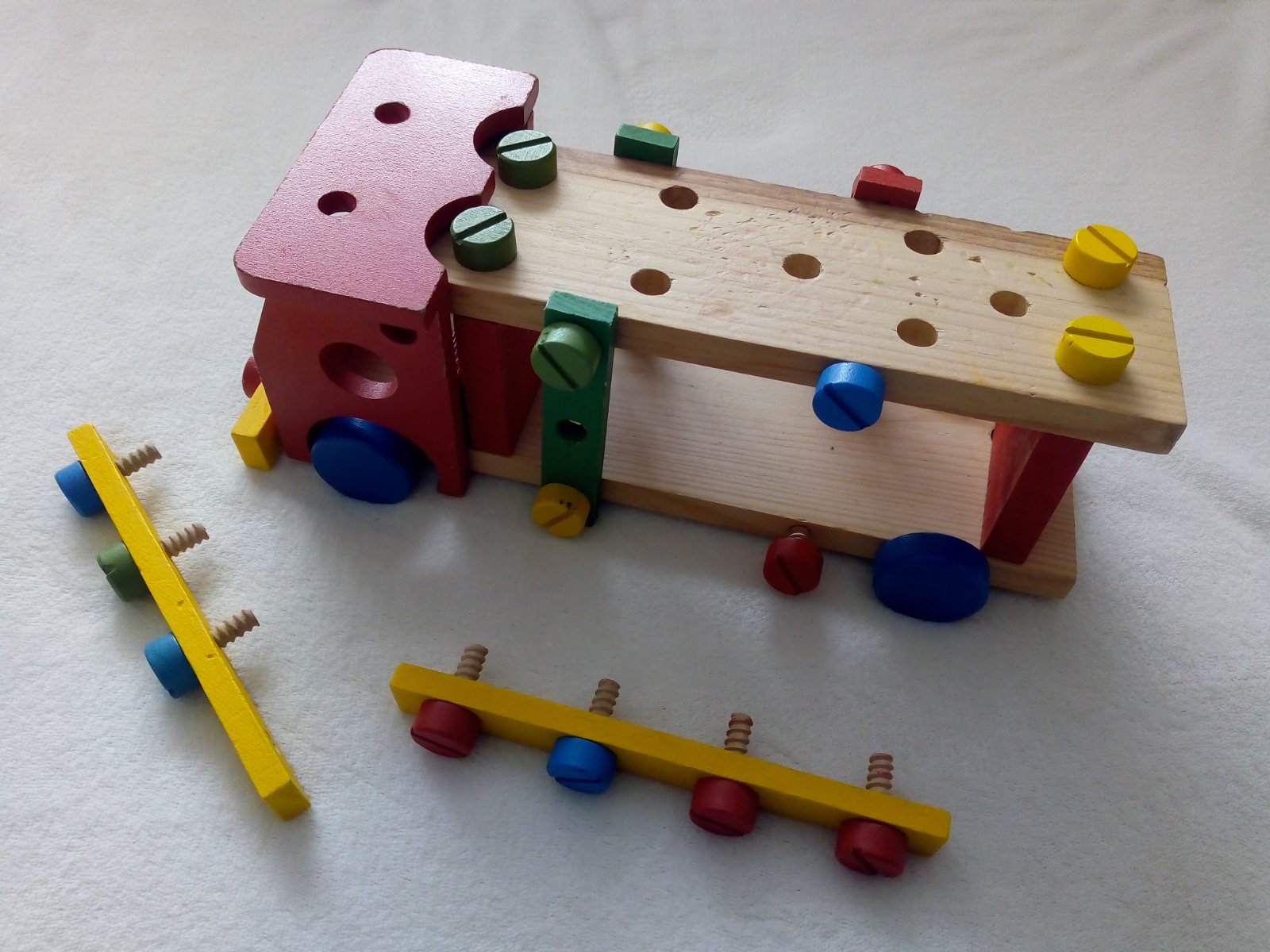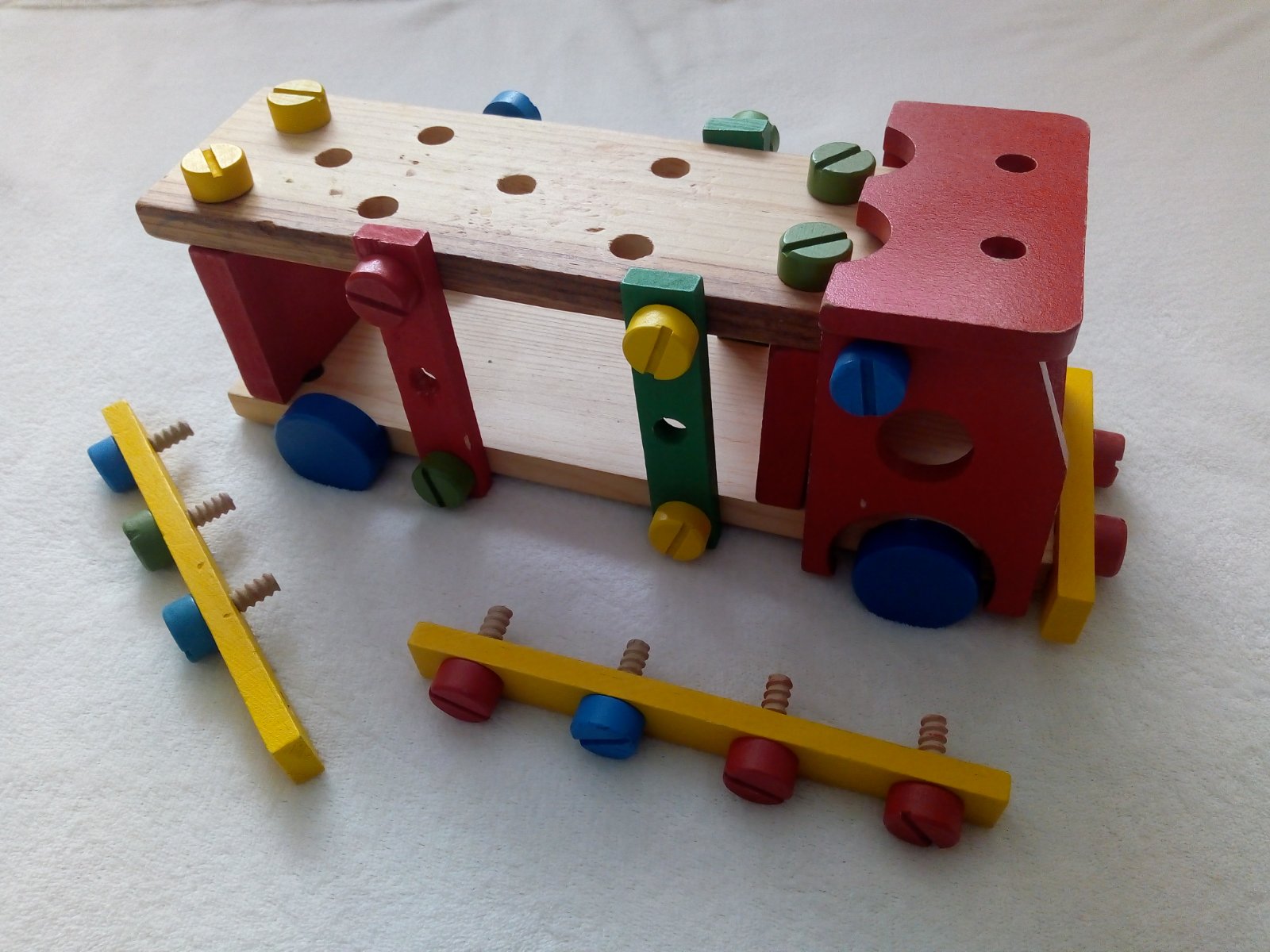 Drevené montovacie autíčko.Dá sa skrutkami rozobrat.