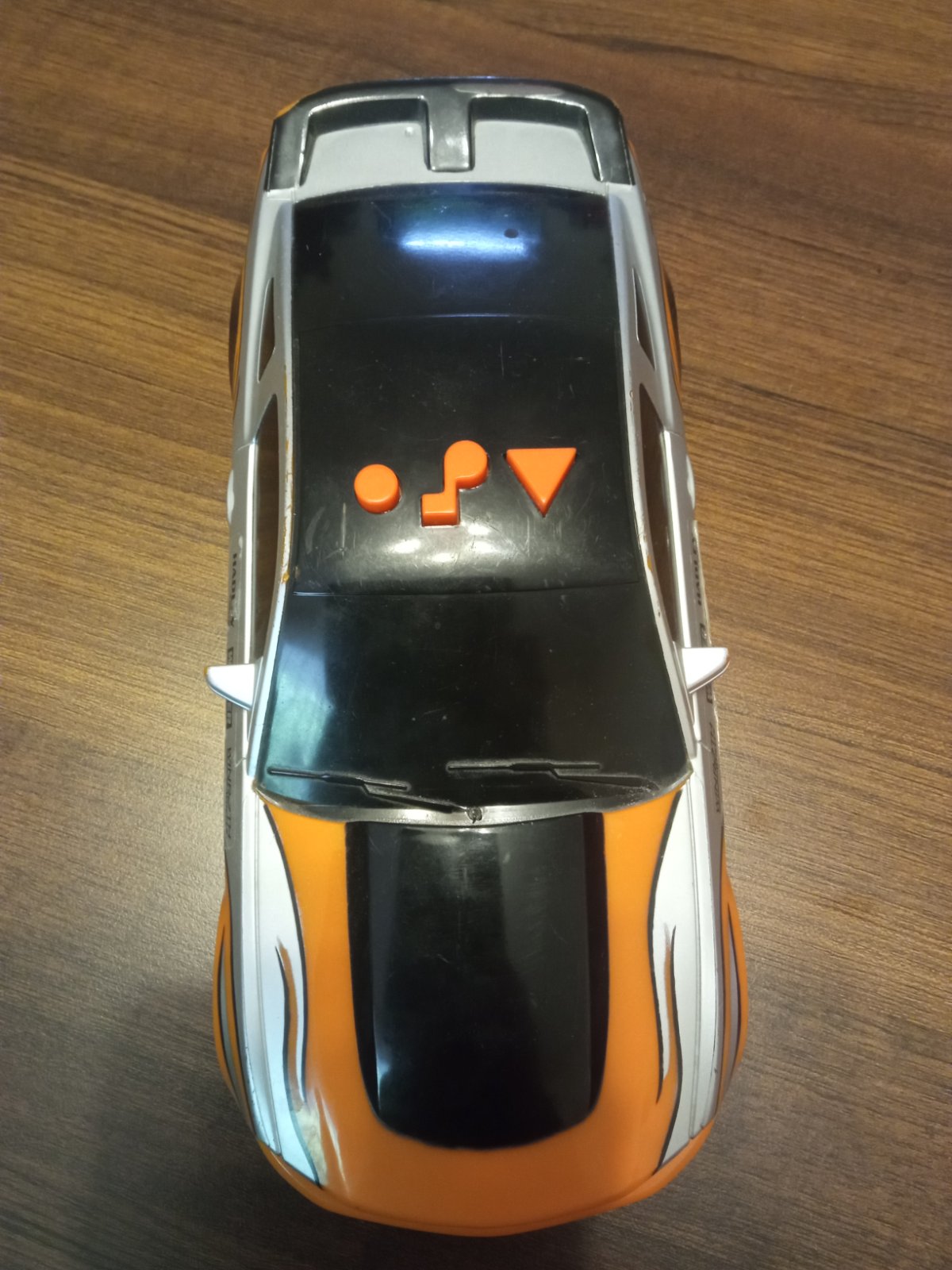 Má 3tlacitka:trúbenie,hudba a tretie priamočiary pohyb so zvukom motora, svietia svetlá