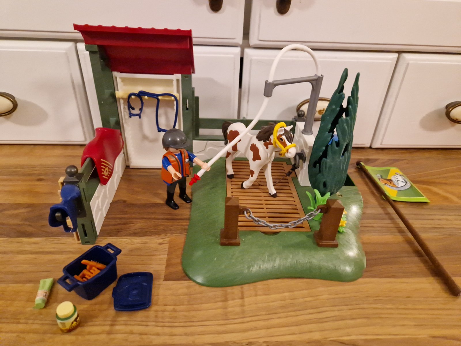 Top stav, chybaju dve drobnosti: deka a podsedlo,inak je hracka kompletna,vlajku treba prilepit,ked sa hracka postavi. Original.krabica a original navod na postavenie. Kupovana v Nemecku.