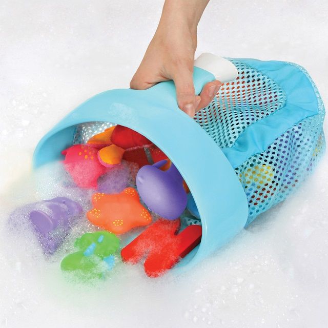 Budete milovať, aké jednoduché je udržať vašu kúpeľňu nepoškvrniteľnú s organizérom Super Scoop Bath Toy od Munchkin. Široký otvor a rukoväť umožňujú ľahké nabranie hračiek vyskladnenie po dobe kúpeľa a roztomilý rybársky háčik bezpečne visí na stene kúpeľne, aby sa z neho voda vypustila a vysušil sa, a taktiež poskytoval pohodlné uloženie hračiek.