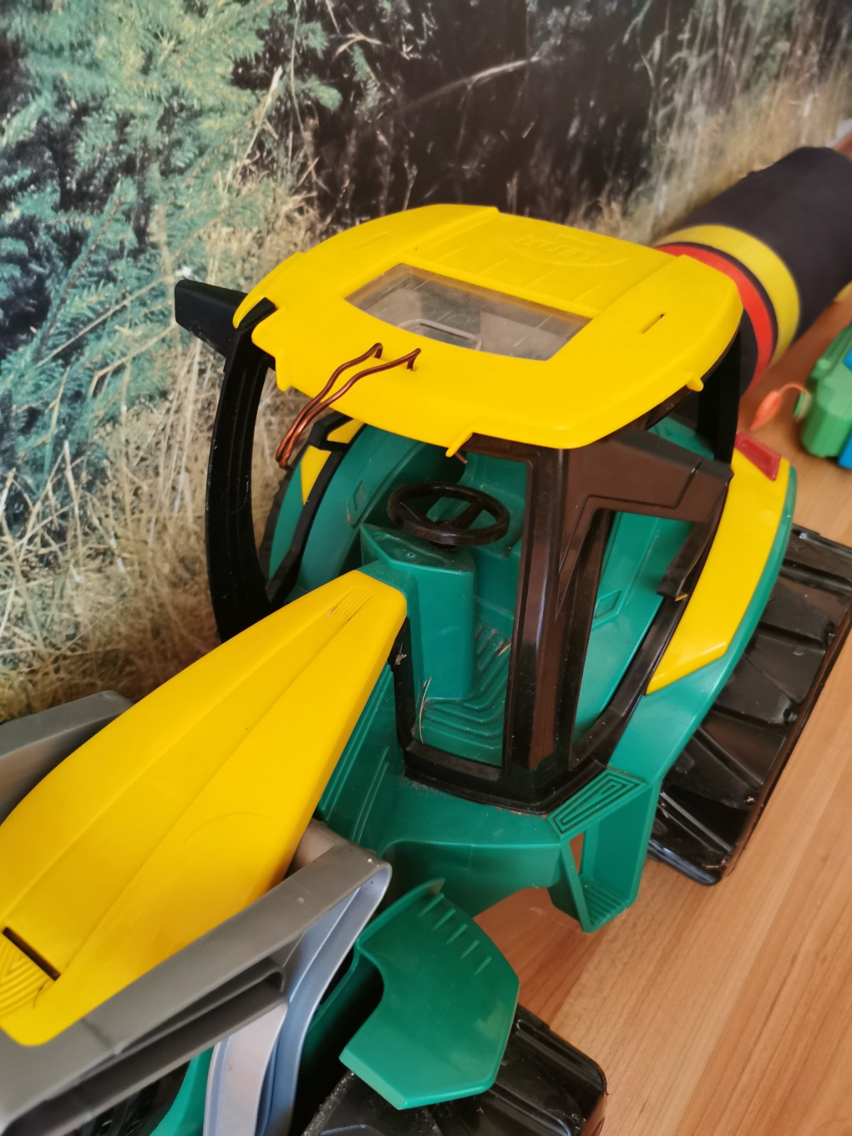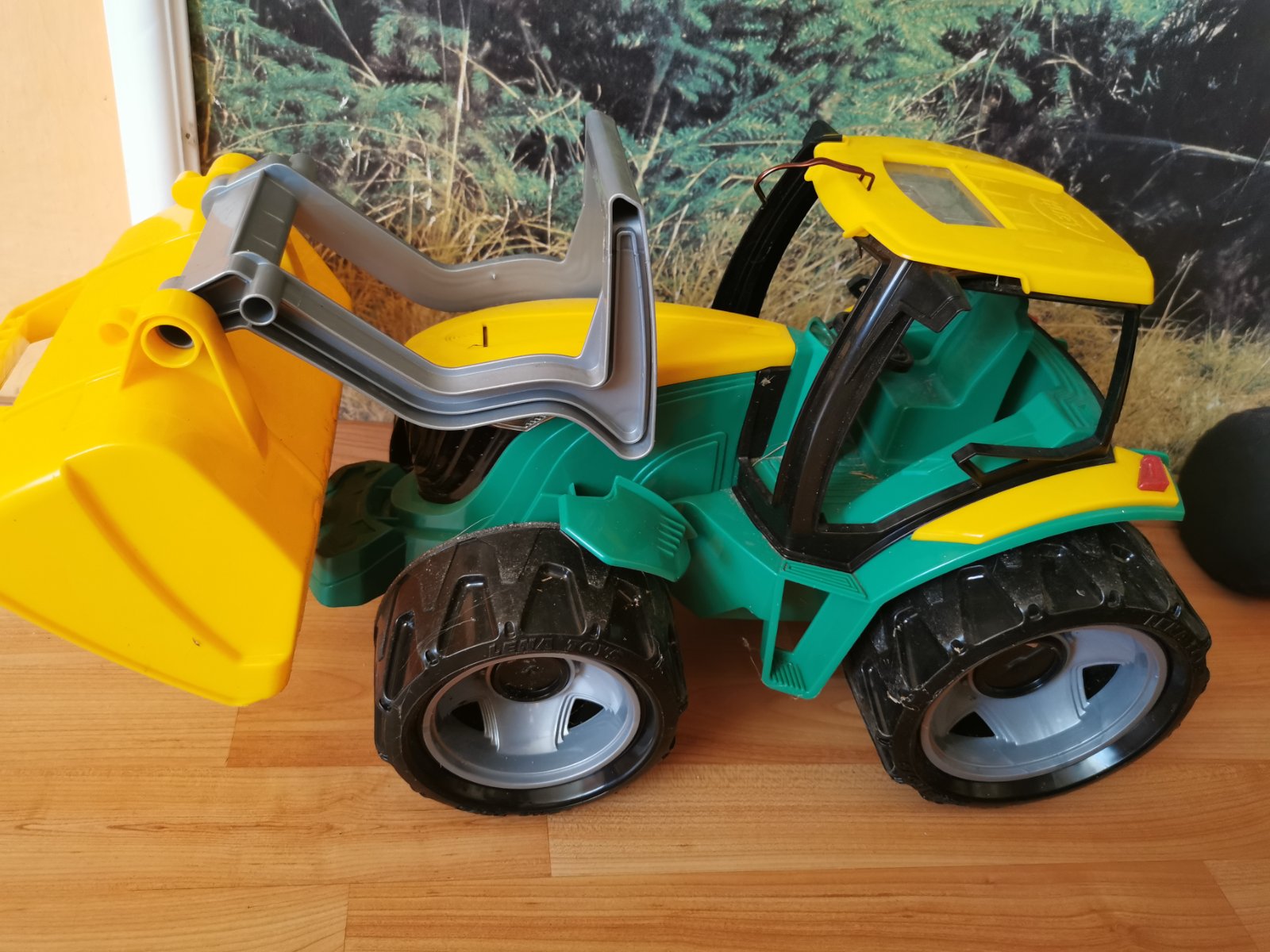 Veľký traktor v top stave, hraný iba vo vnútri. Je veľký, vhodný aj do piesku. Má namontovaný držiak na vidlicu, aby držala hore.V
