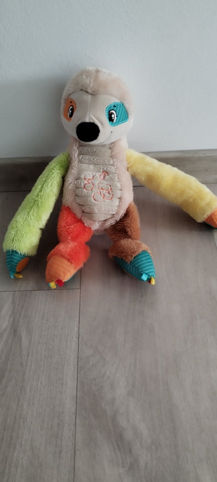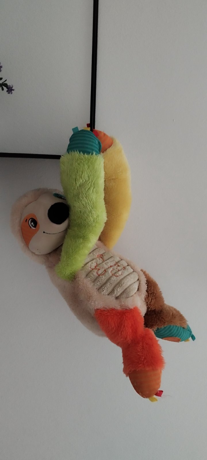 Značka Fisher price. Hrá upokojujúce melódie, bruško sa pohybuje hore dole, lampa svieti, hračka dýcha, bije mu srdiečko. Toto všetko sa dá zvlášť vypínať podľa potreby. Super pomôcka na zaspávani...