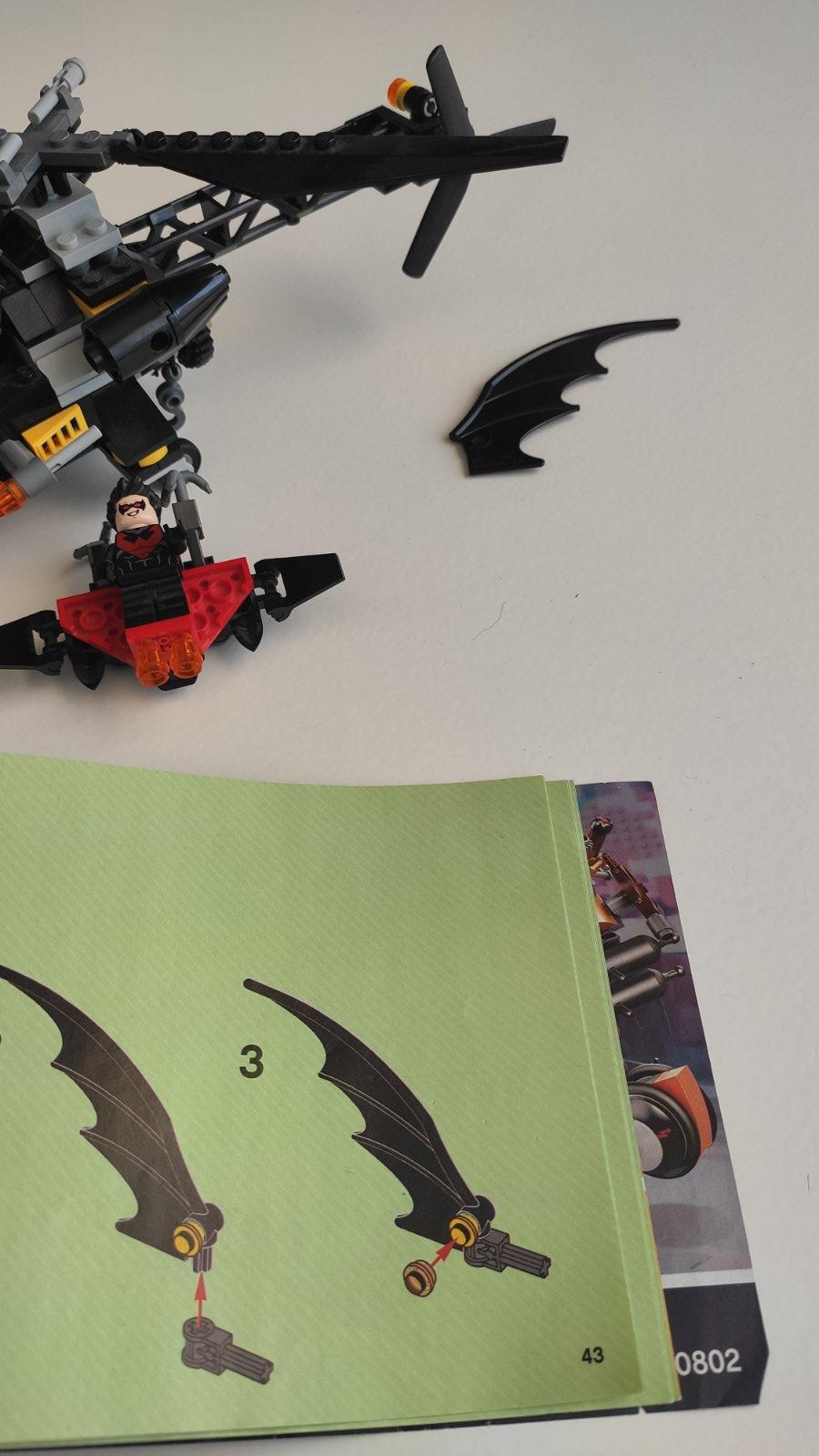 Stavebnica má všetky kusy, len na chvoste je ulomený znak batmana.