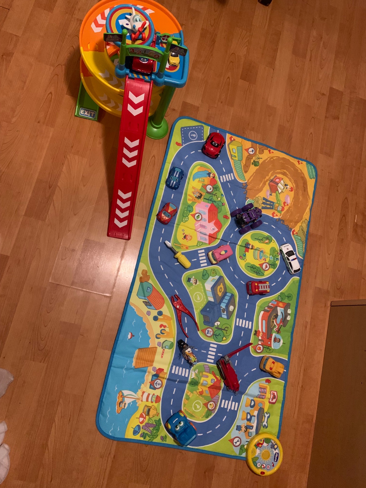 Všetko plne funkčné.Plastová hračka-rozkladacia. Podložka je čistá a hrá.