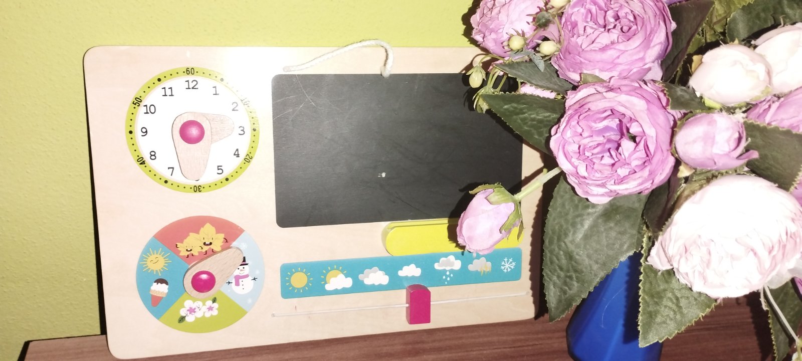 Krásny drevený kalendár, čas, počasie, ročné obdobia a tabuľka na kreslenie, bez kriedy, dá sa zavesiť, bez poškodenia 🌹
