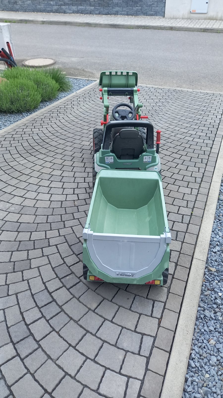 Originál FENDT traktor, kúpený v Nemecku. Súčasťou sú gumené nafukovacie kolesá a príslušenstvo. Lyžica, vlečka sa dá odpojiť. Traktor má brzdu aj spiatočku. Odber len osobne.