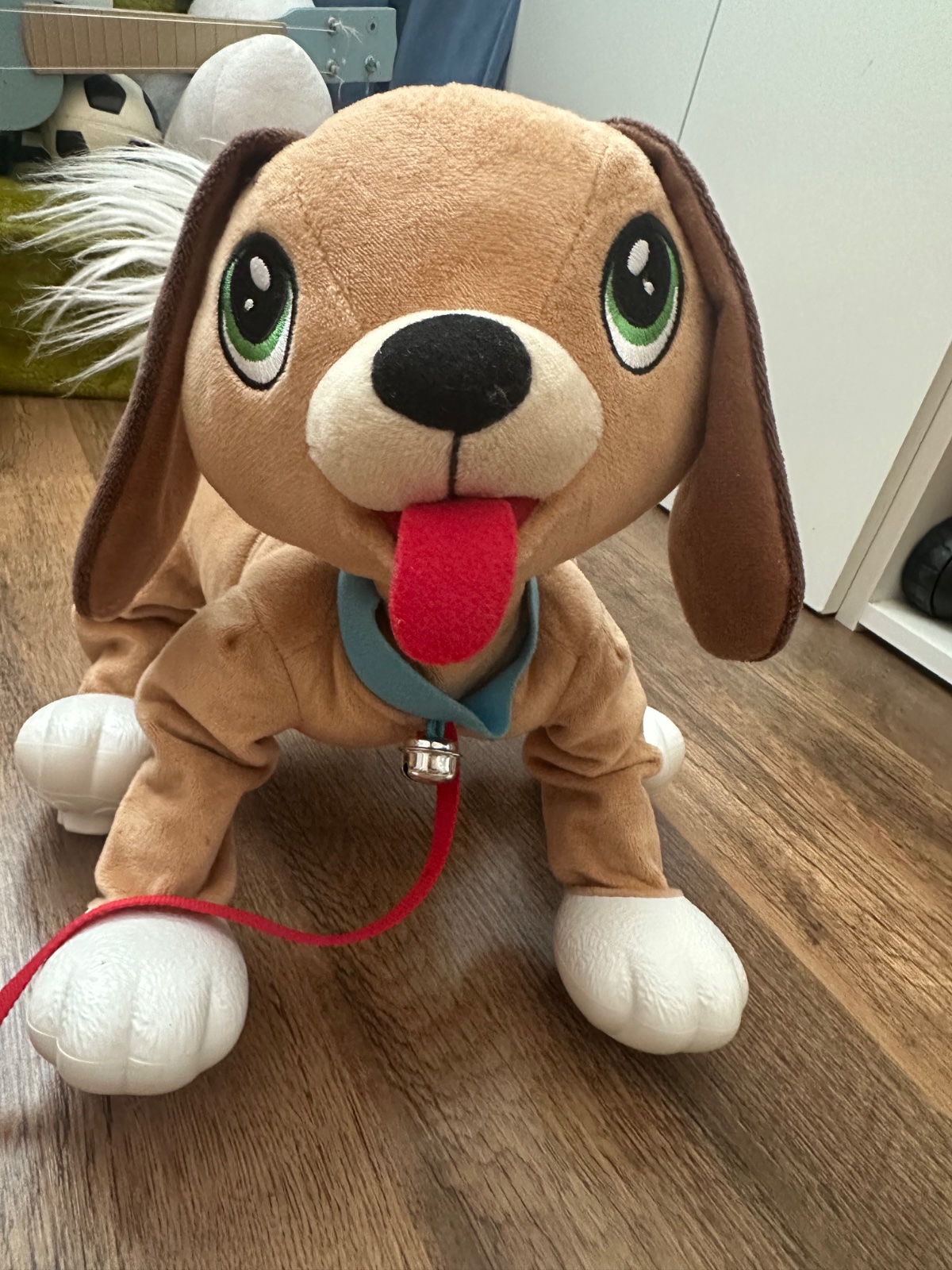 Značka Fisher price. Hrá upokojujúce melódie, bruško sa pohybuje hore dole, lampa svieti, hračka dýcha, bije mu srdiečko. Toto všetko sa dá zvlášť vypínať podľa potreby. Super pomôcka na zaspávani...
