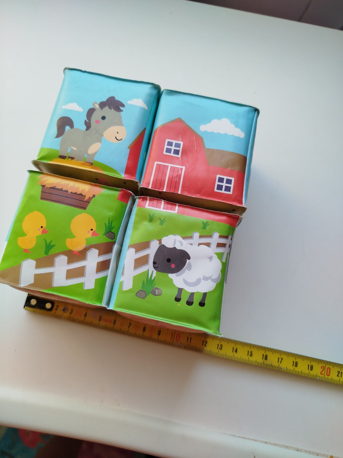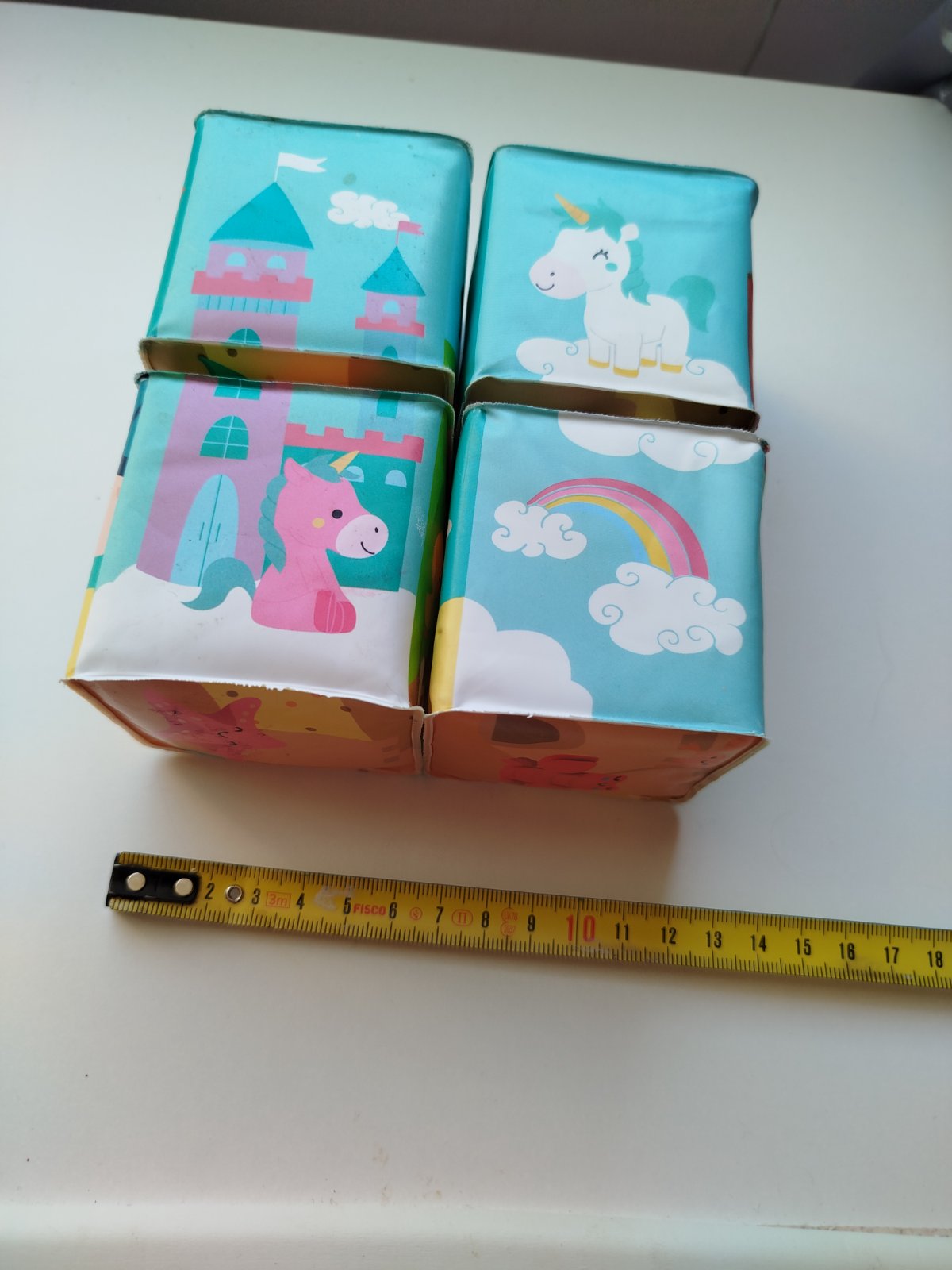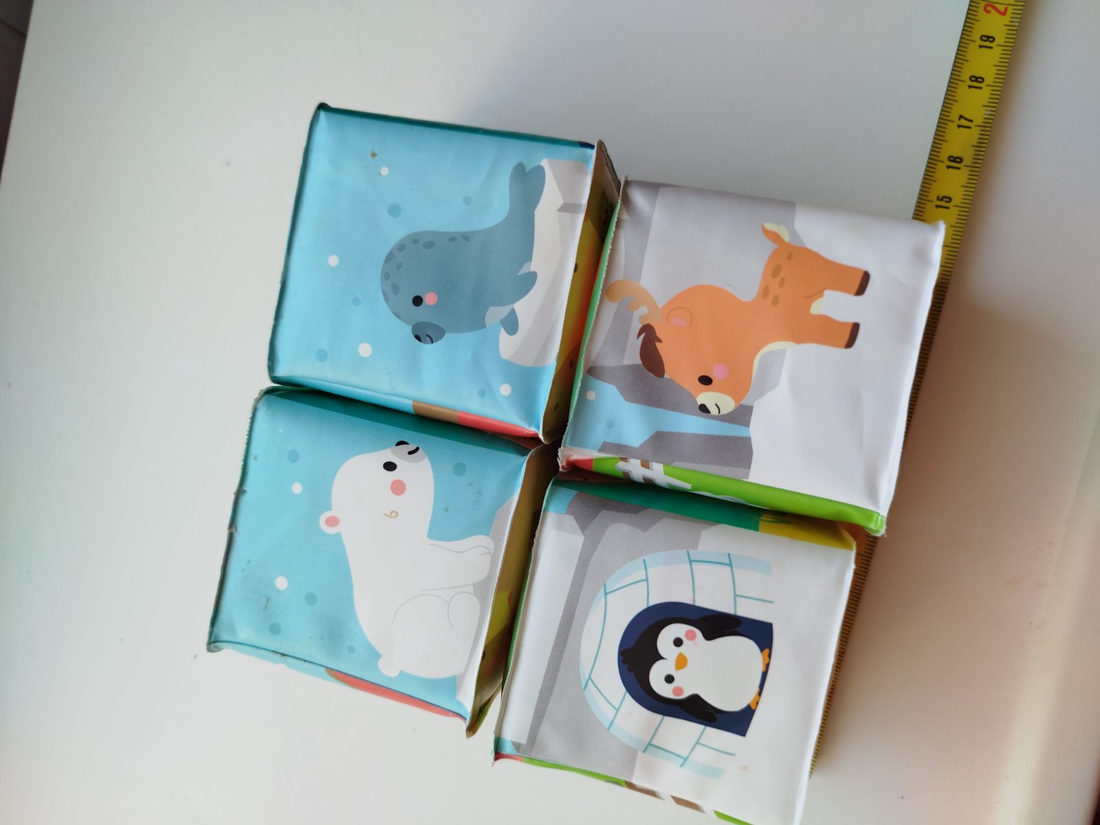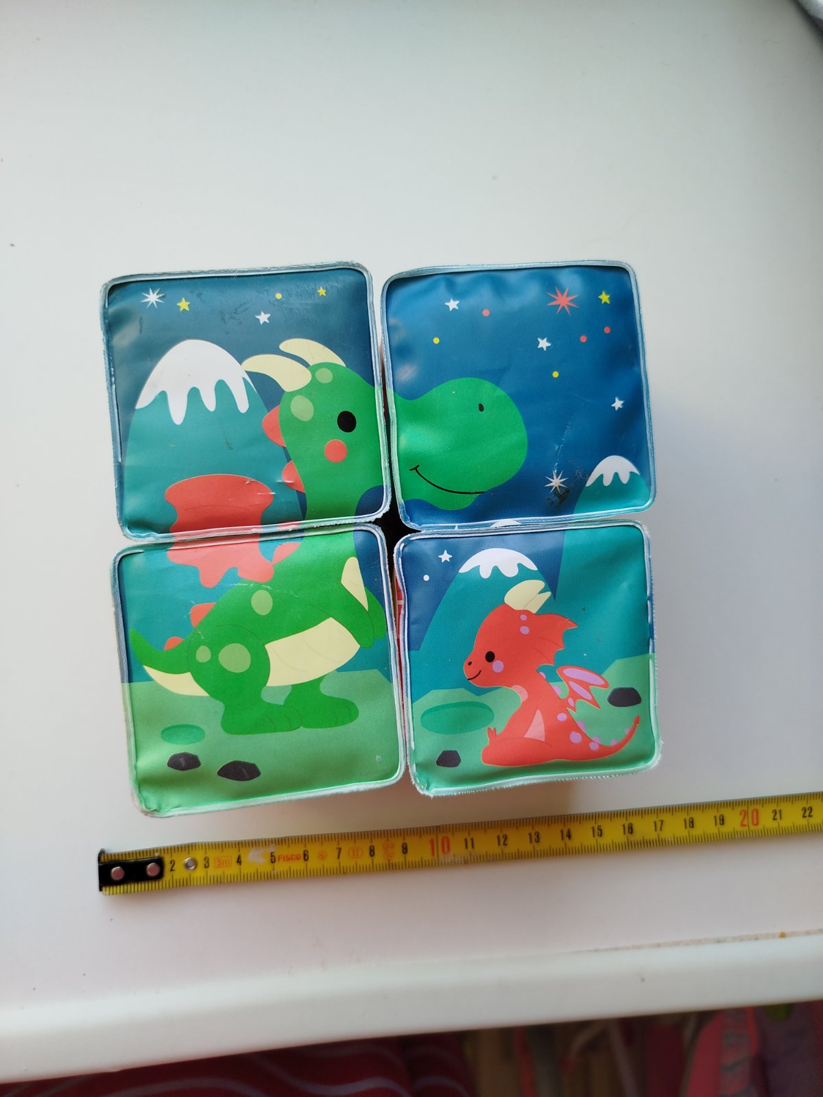 Nehrané, v super stave. Mäkké plastové kocky pre najmenších s veselými motívmi zvieratiek. Kocky sú vhodné na hru na suchu aj vo vode pre bábätká od 10 mesiacov.Balenie obsahuje 4 kocky, z ktorých je možné poskladať 6 motívov - korytnačky, domáce zvieratká na farme, jednorožci, dráčiky, polárne zvieratká, morské zvieratká.Vhodné pre deti: od 10 mesiacovRozmer produktu: 6 x 6 x 6 cmMateriál: mäkký plast vhodný aj do vody.