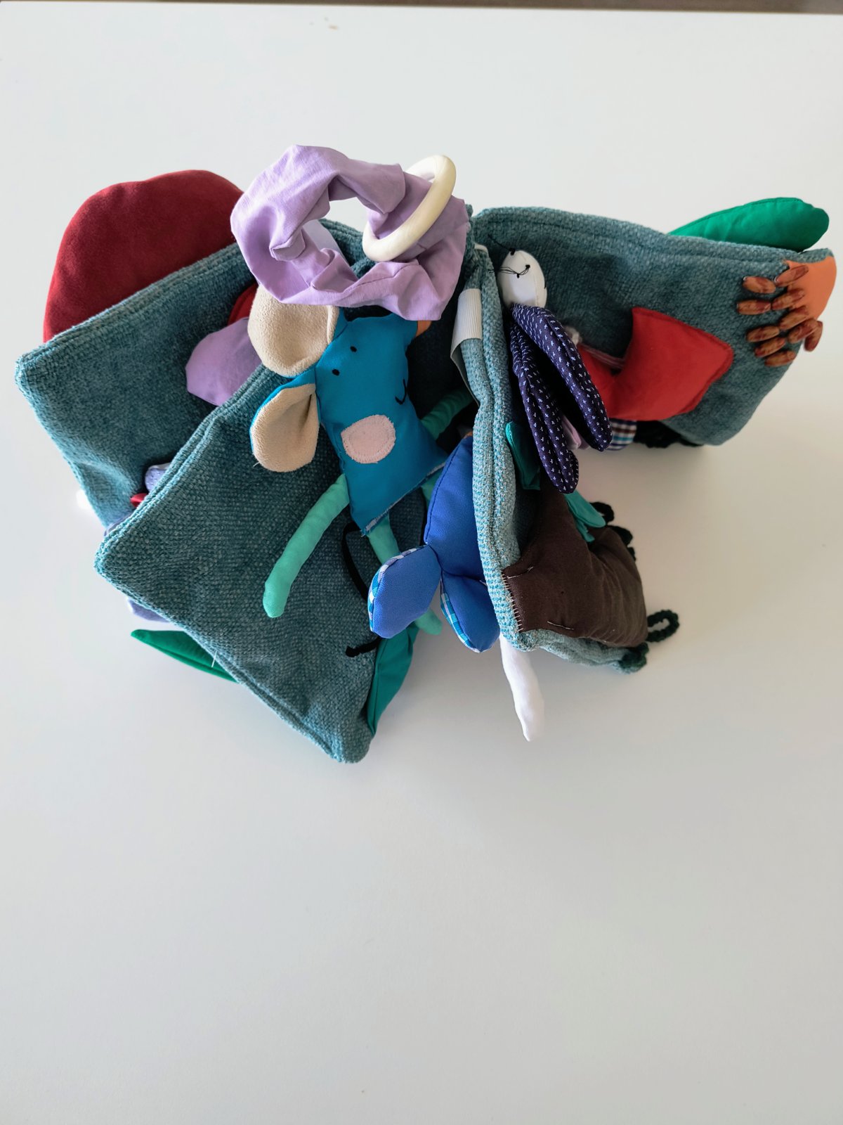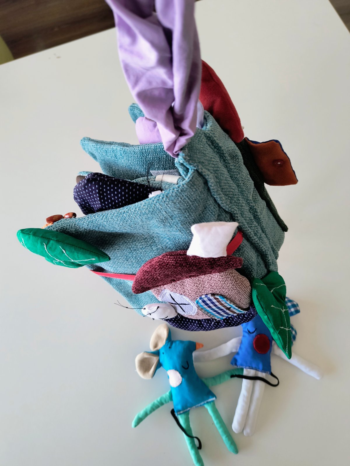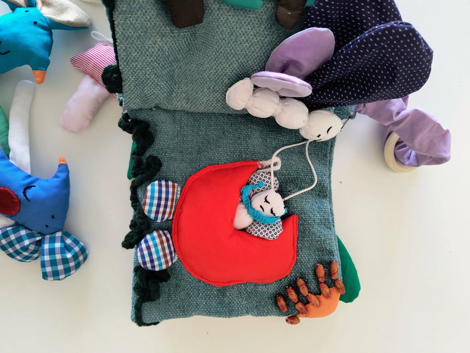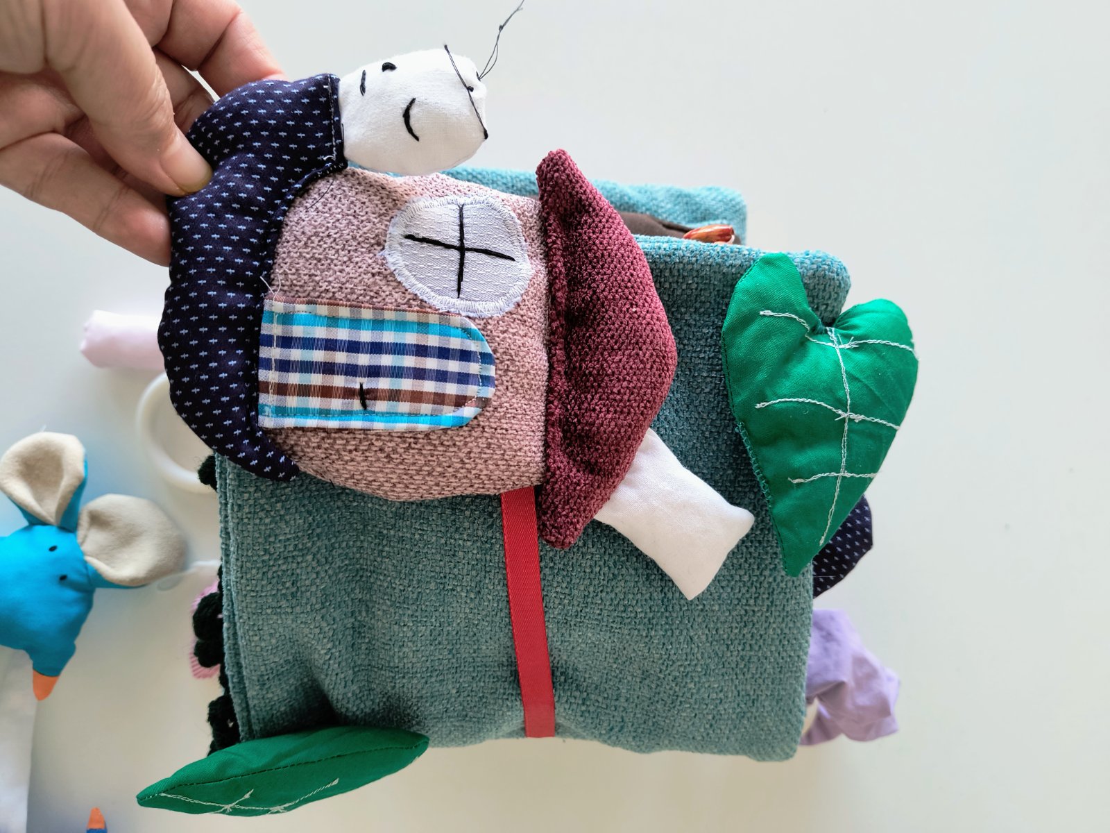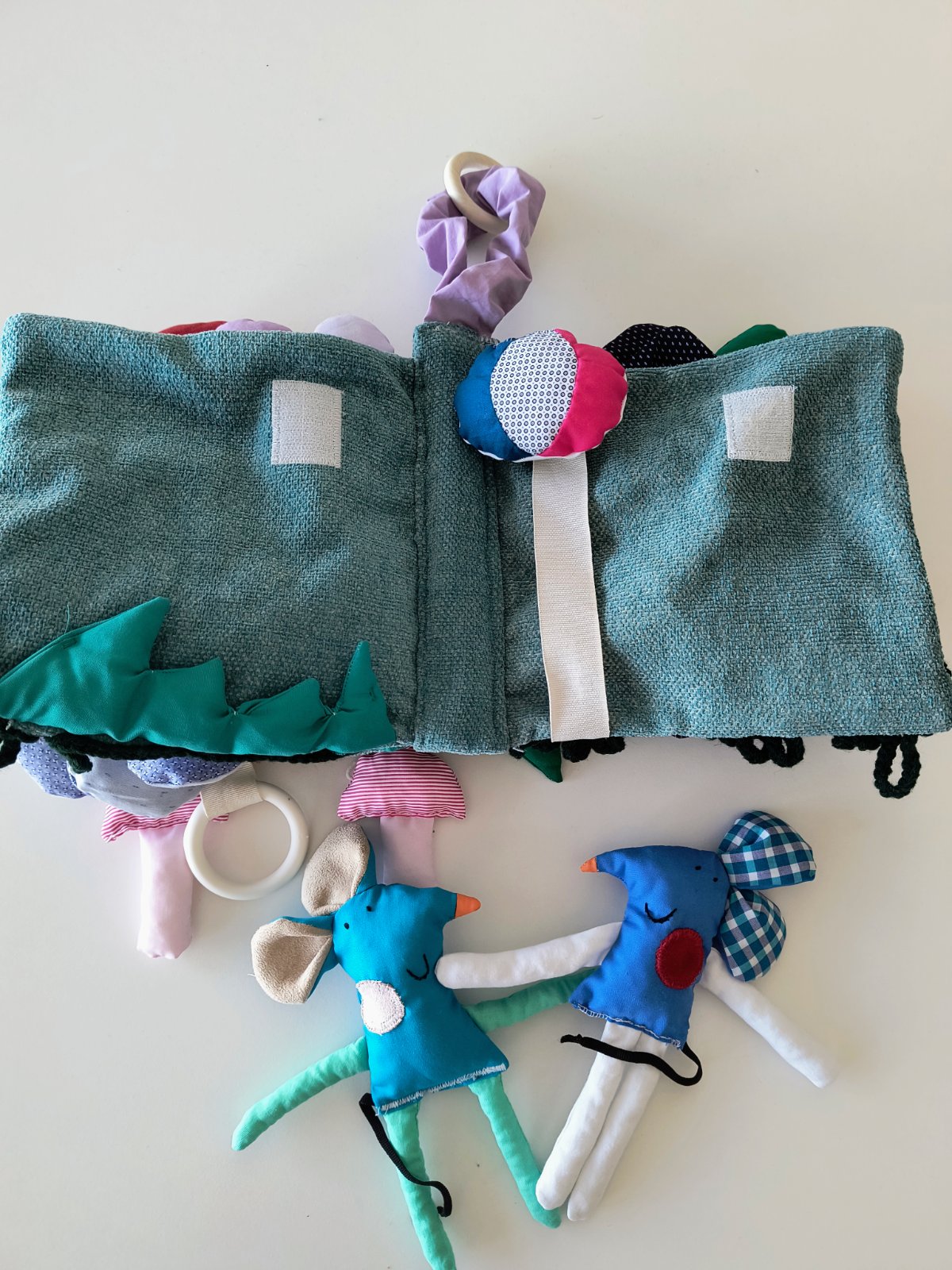 Krásna, detičky si upevňujú zmysly, lahučká,odnesie ju aj dieťatko v ruke,zvieratká sa dajú odlepiť,pohybovať sa s nimi, vkladať apod., veľkosť je 19cmx20cm,kniha je originálna,nedá sa ušiť úplne rovnaká,len podobná,jej výroba trvá približne 2 týždne, nakoľko je šitá ručne a doplnkovo šijacím strojom