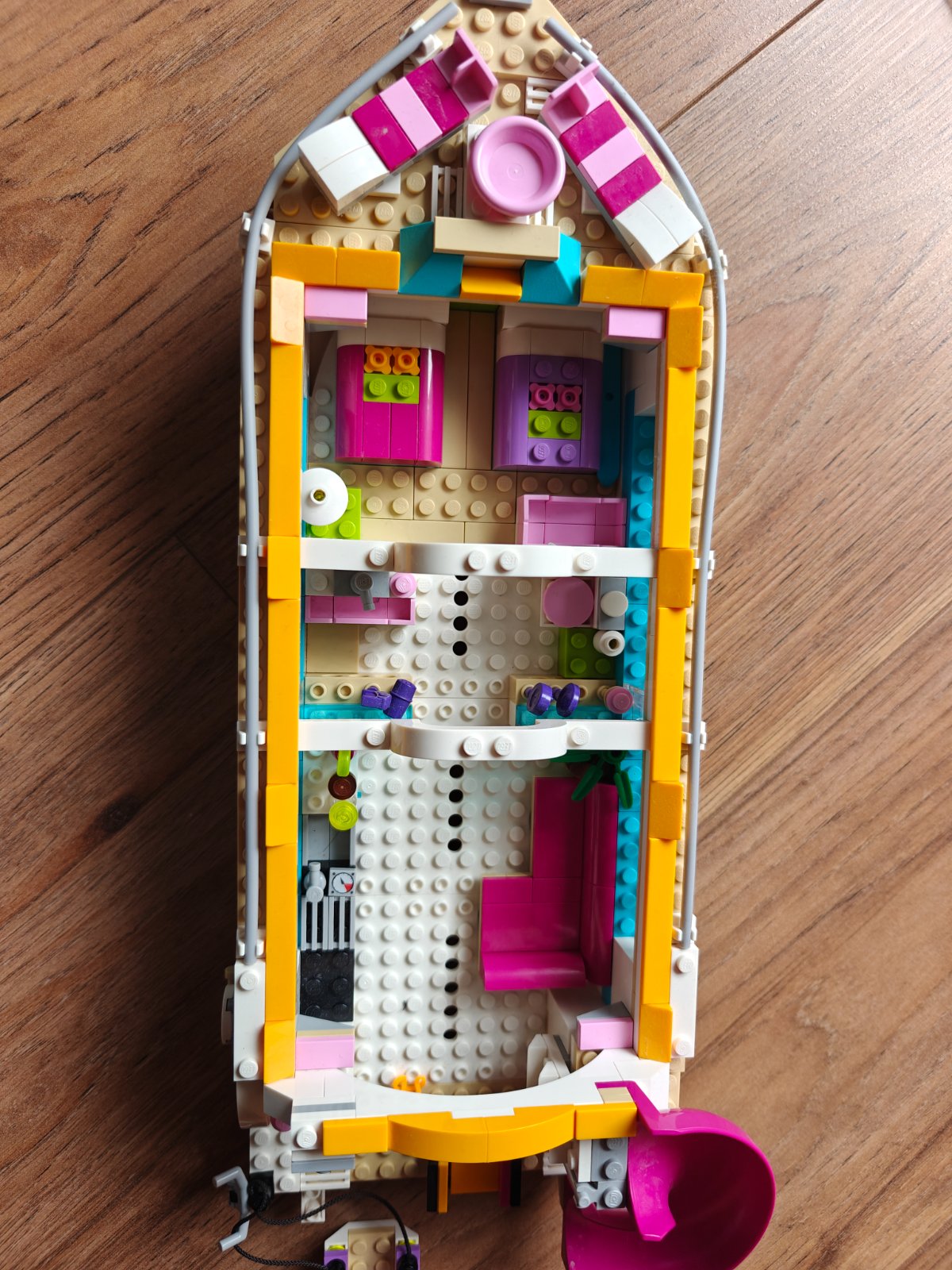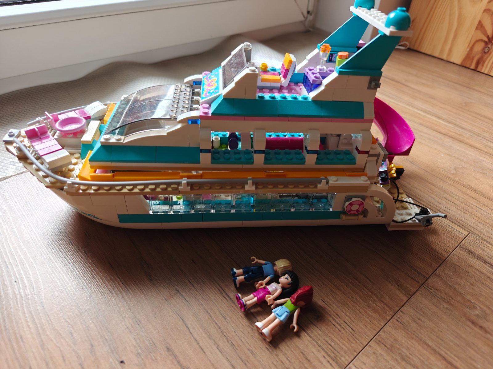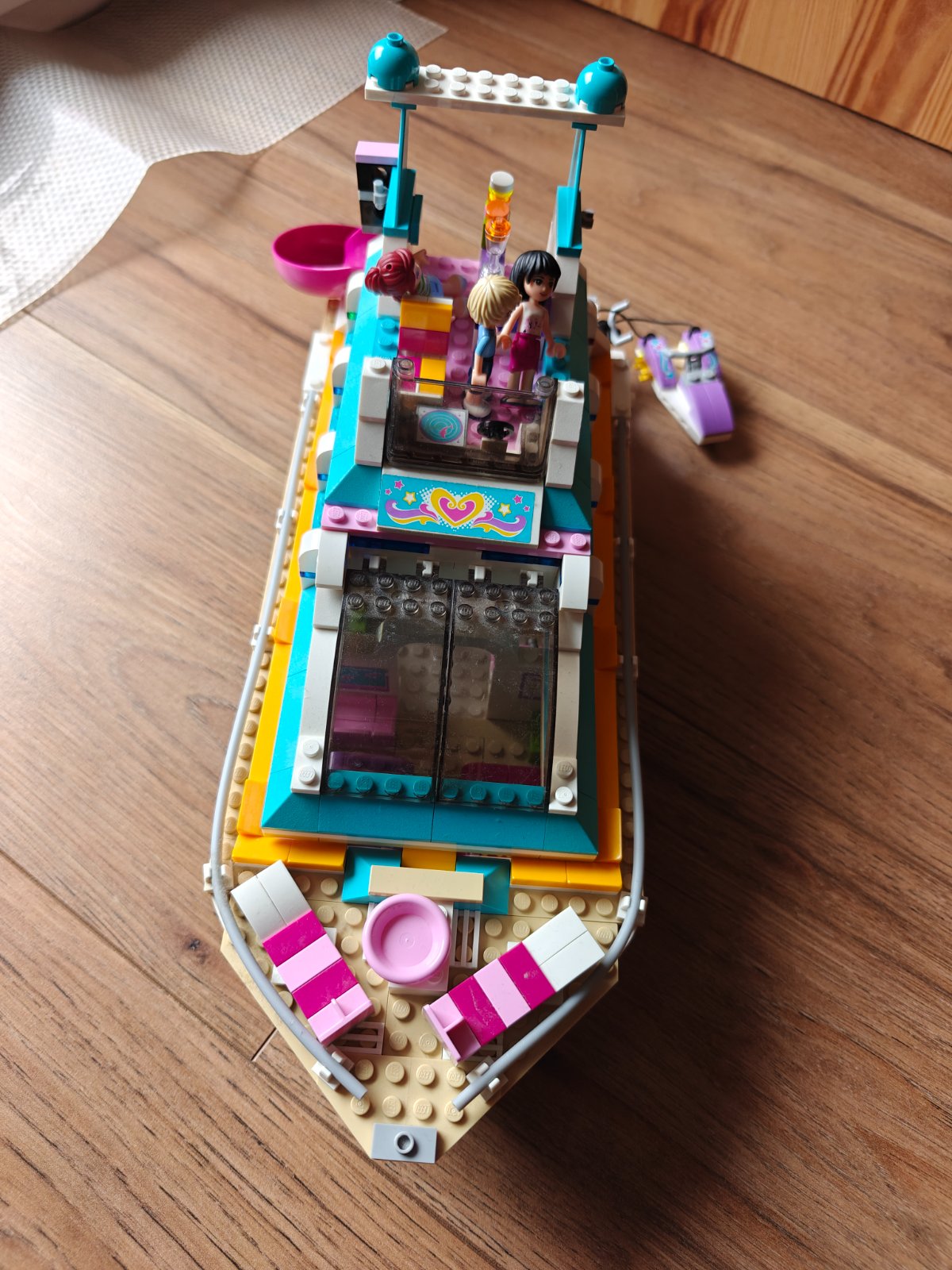 Lego loď, neviem či je kompletná. Takto som ju kedysi kúpila . Chýbajú antény jedno by som našla druhé neviem kde je , vodné lyže v lodi. Krabica je , ale návody nie. Dostali sme ju poskaladanú.