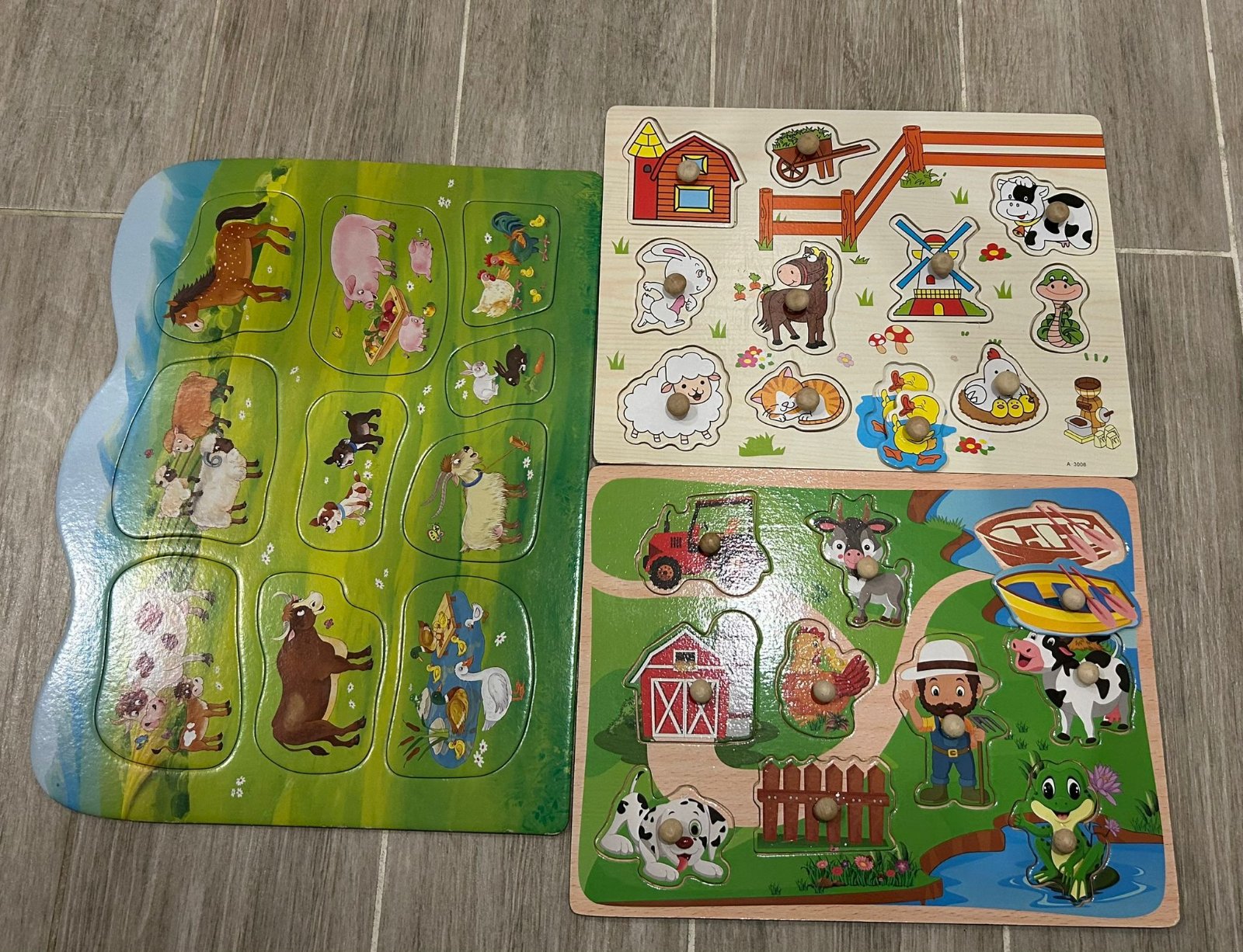 Predávam za sestru 3 ks detských puzzle/vkladačiek s motívom zvieratiek.