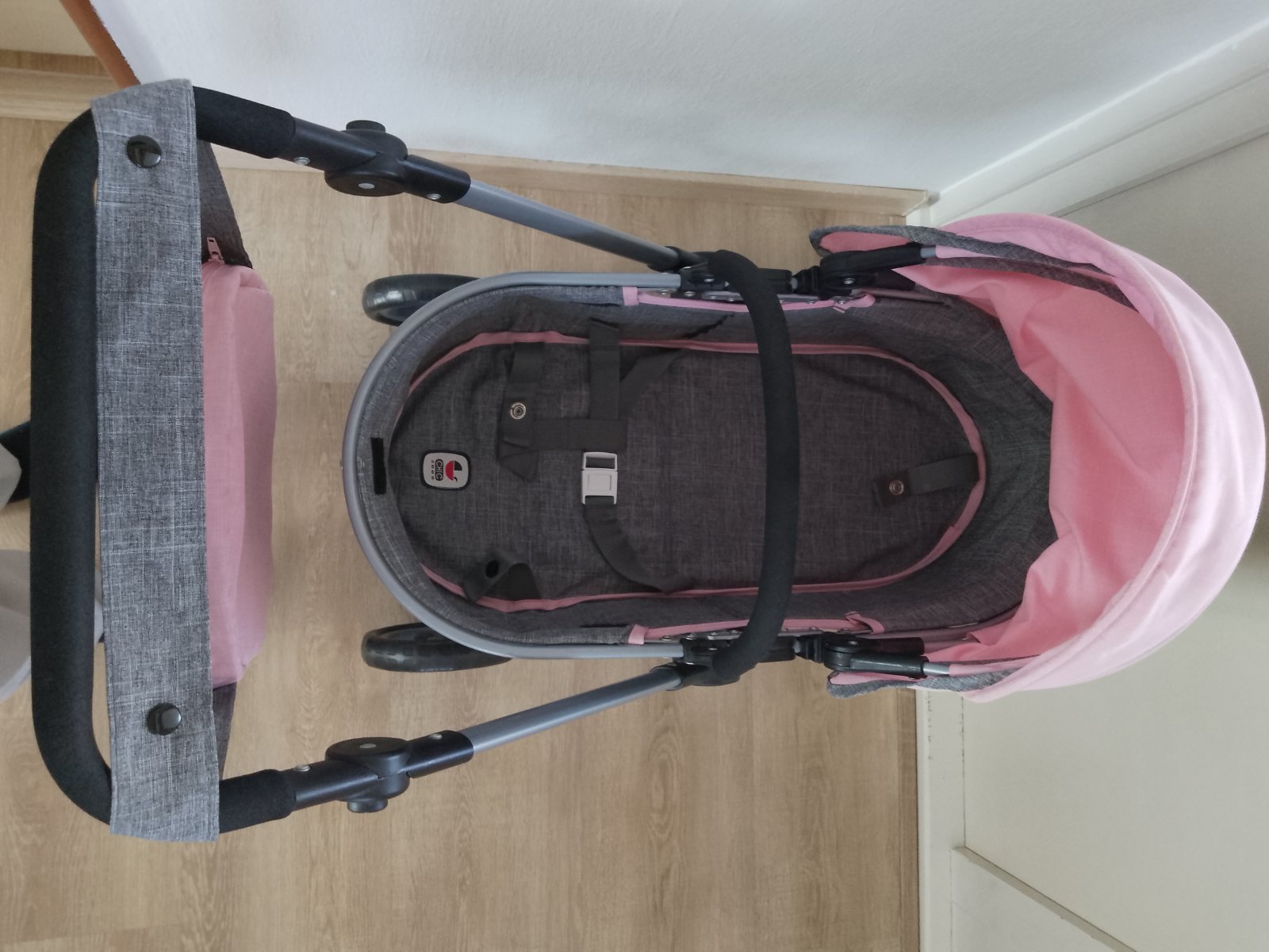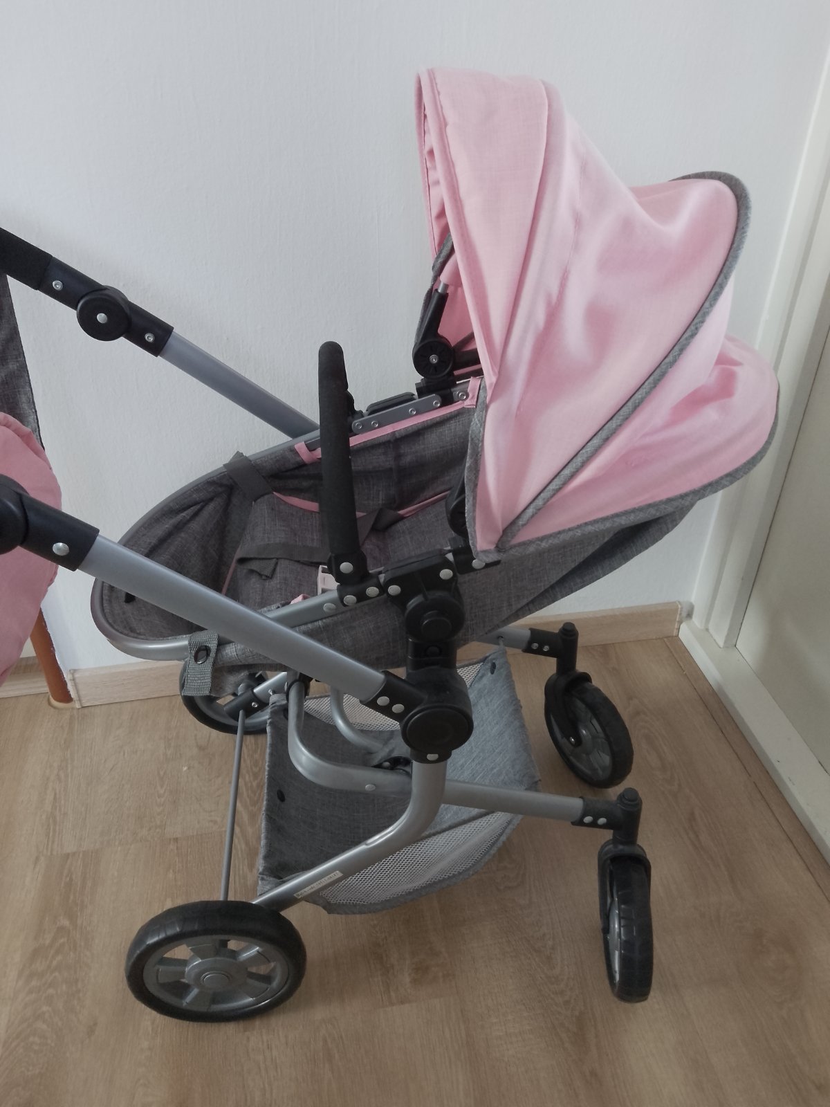 Detský kočiarik pre bábiku 2 v 1. Hlboký kočiarik, ktorý sa dá jednoducho a rýchlo zmeniť na športiak. Nezaberá zbytočne miesto hlboká vanička, keď je z neho športiak. Plus taštička. Super stav. Používaný bol málo, bez poškodenia. Športová časť je polohovateľná, tak isto aj madlo. Rukoväť je výškovo nastaviteľná. Strieška je nastaviteľná. Predné kolieska sú otočné. Spodný košík sa dá odopnúť. Používaný bol len v byte, nie vonku. Rozmery - viď foto.