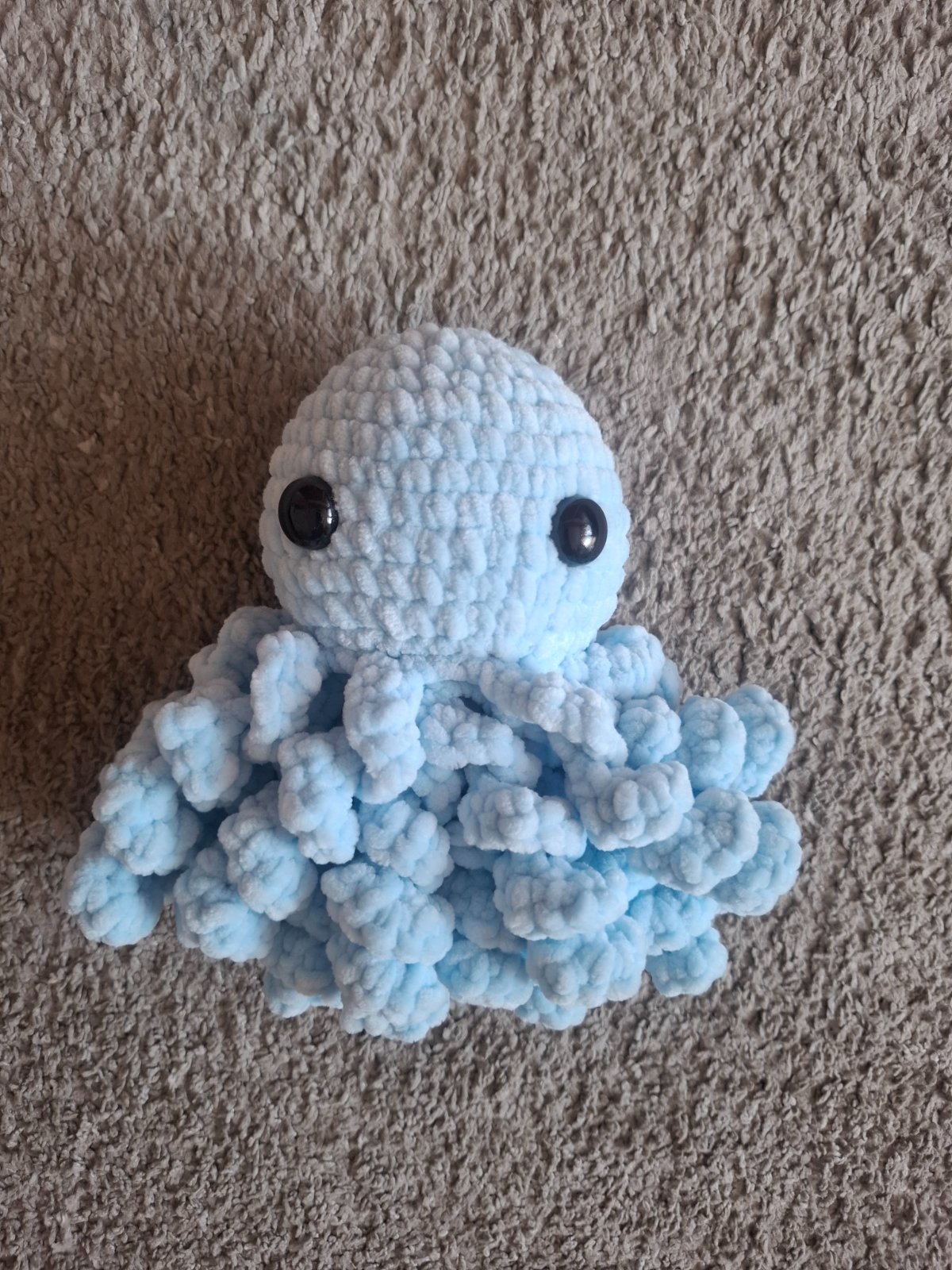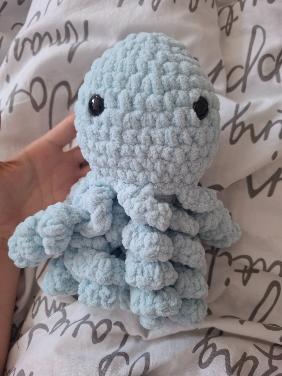 - ponúkam háčkovanú chobotničku, ktorá je skvelým plyšákom pre malé detičky, napríklad do postieľky/kolísky alebo ako darček pre deti