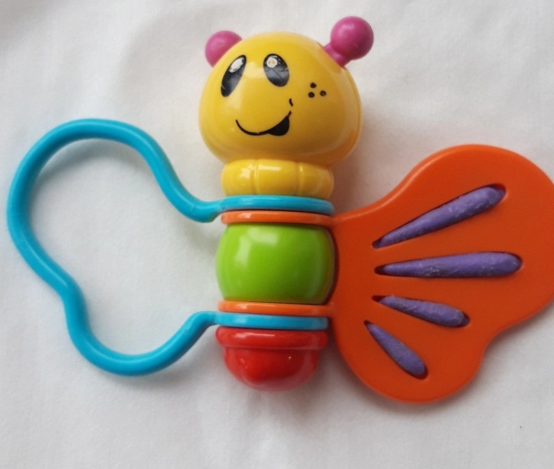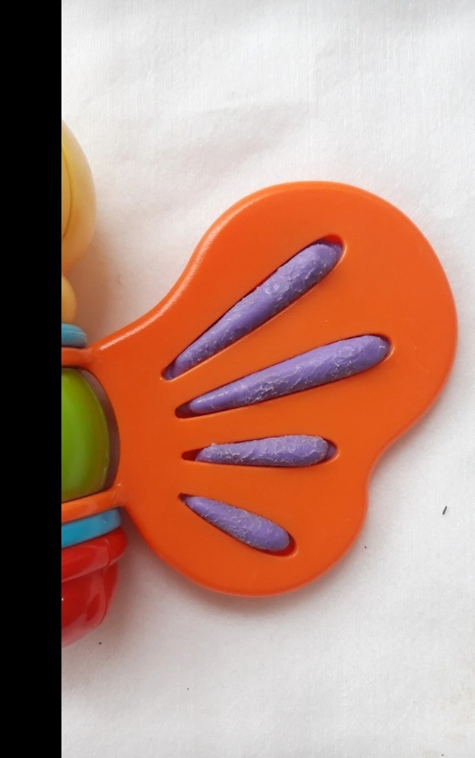 Motýlik má obhryzené fialové časti na krídle z oboch strán tak ako vidno na fotke plus chýba korálka na modrej časti krídla. Predám za symbolické 1€.