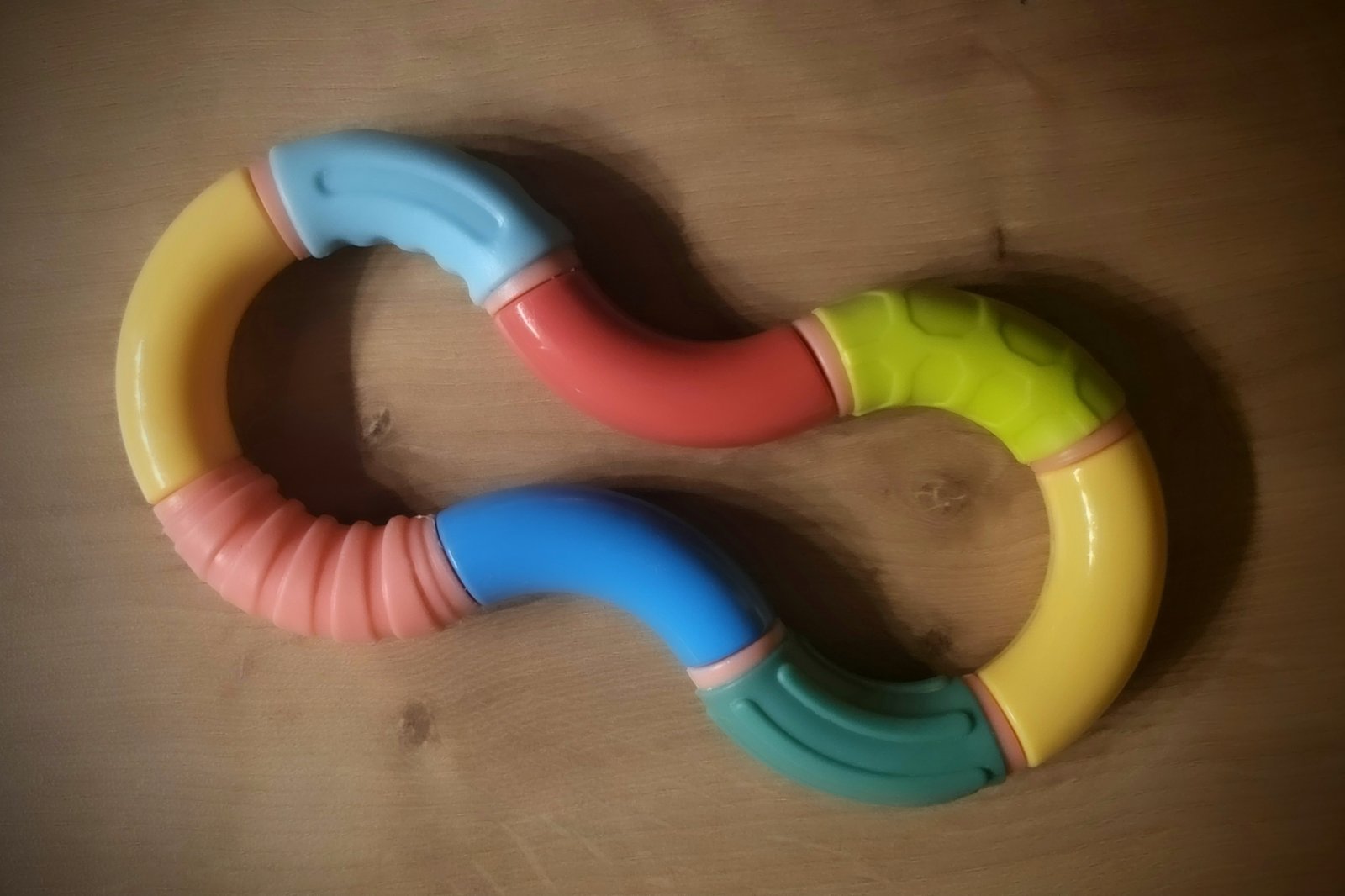 Skvelá motorická hračka z DM pre bábätká vo výbornom stave. Niektoré časti sú gumené. Celá hračka sa dá rôzne "vykrúcať" a tak rôzne tvarovať. Môže poslúžiť aj ako príjemná antistresová hračka pre dospelých. 🙂