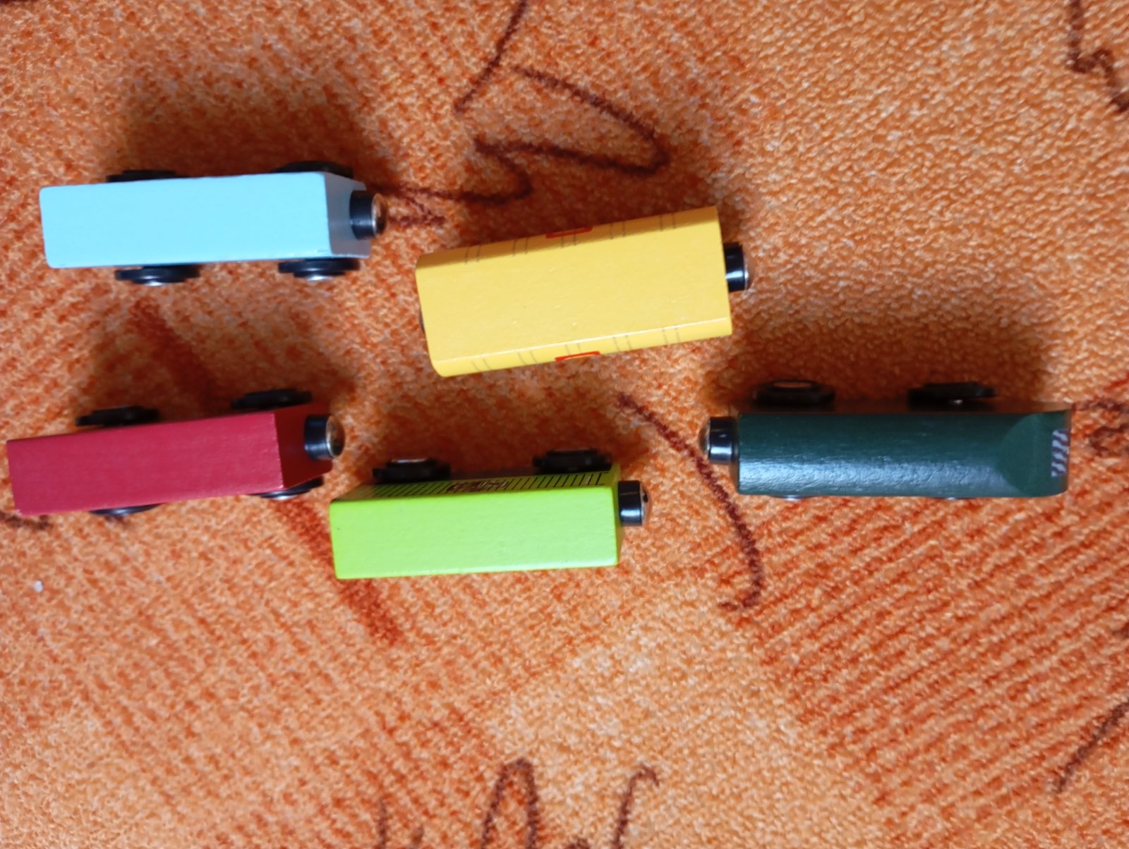 vlacik Thomas and friends Tomas masinka mame 3 ks kus / 3,5 dlzka 8,5 sirka 3 vyska 5 na jednom je osuchana farba na dreve na druhom je slabsia farba v tvari