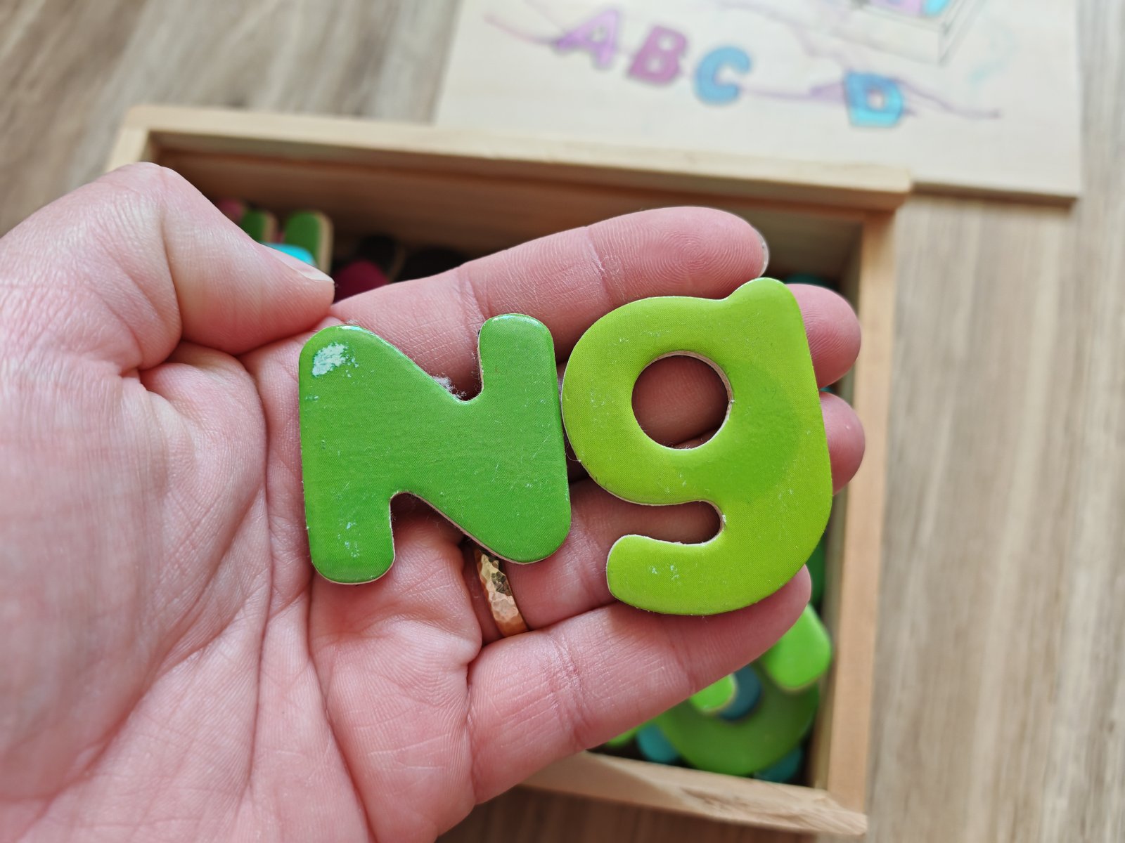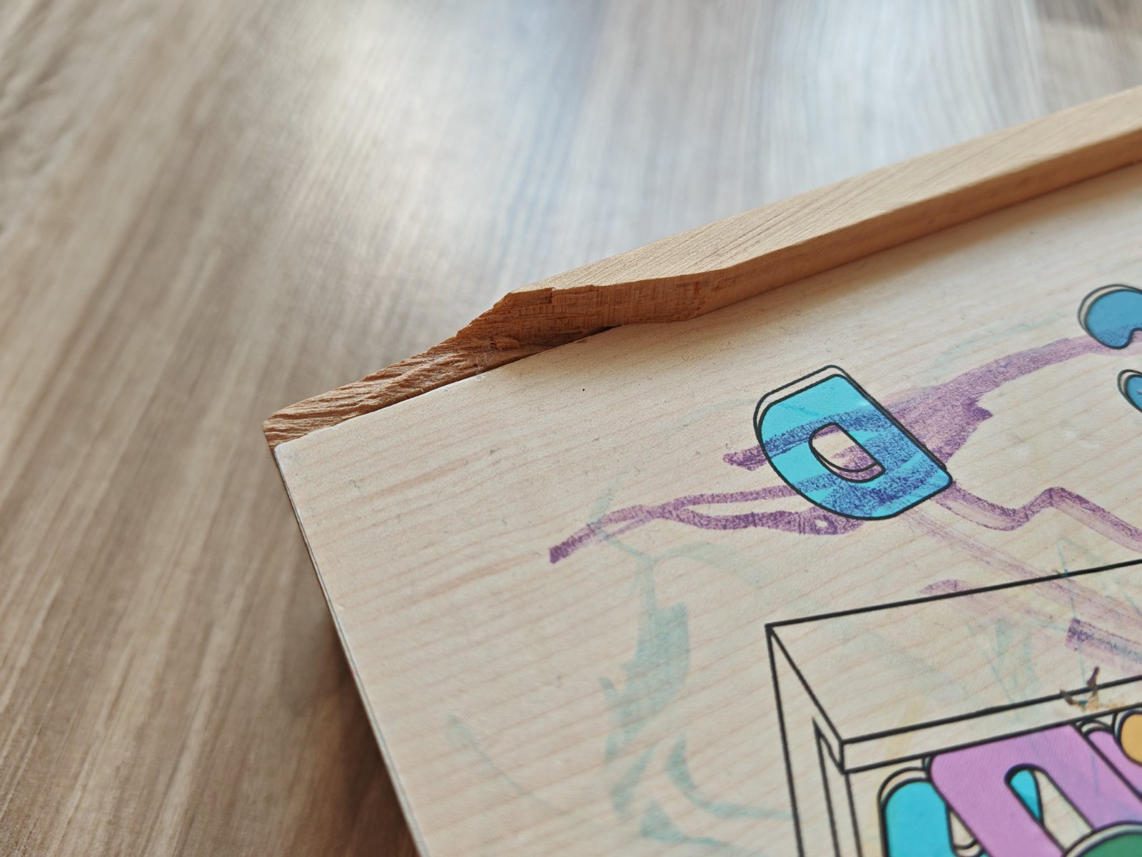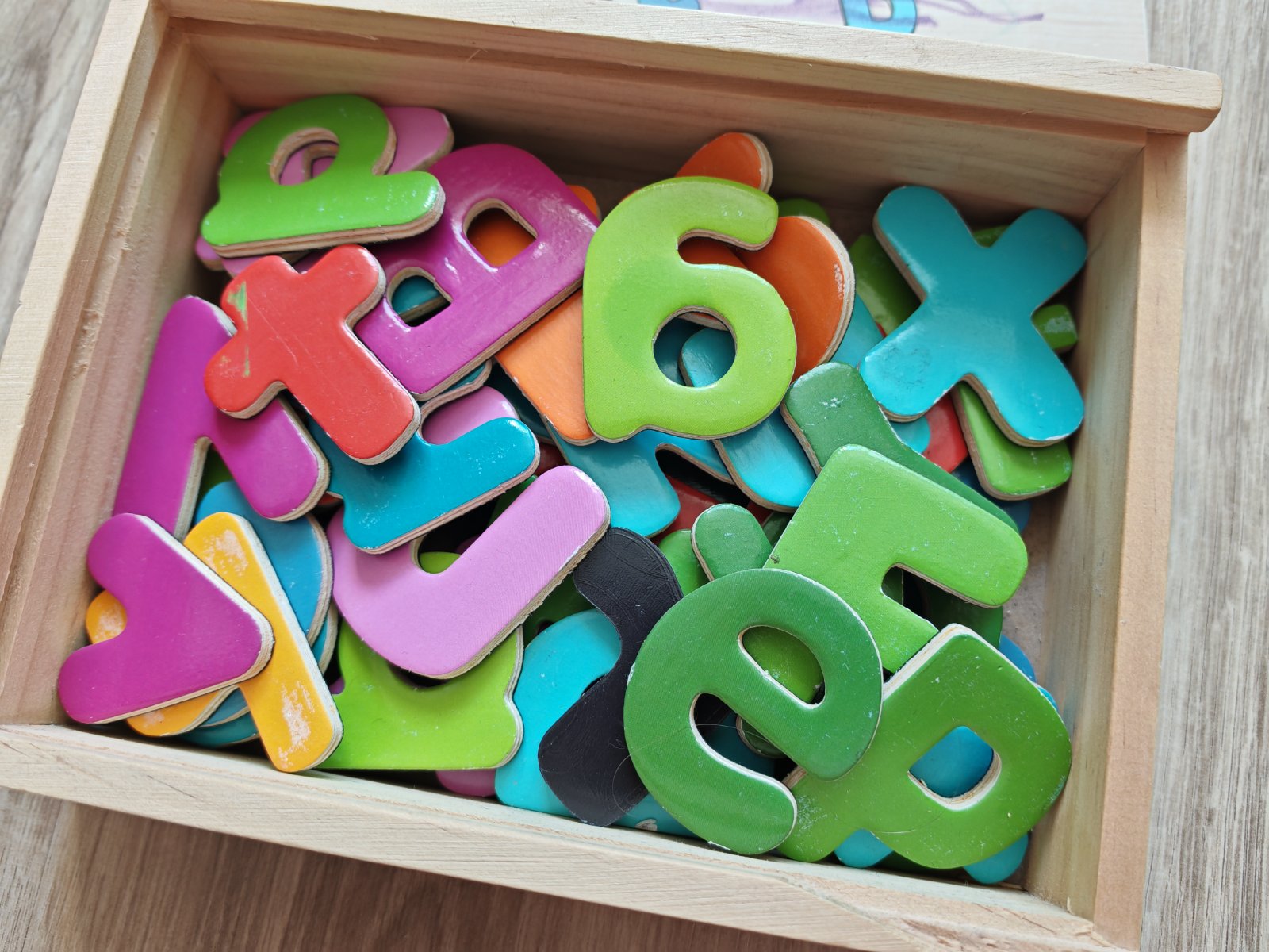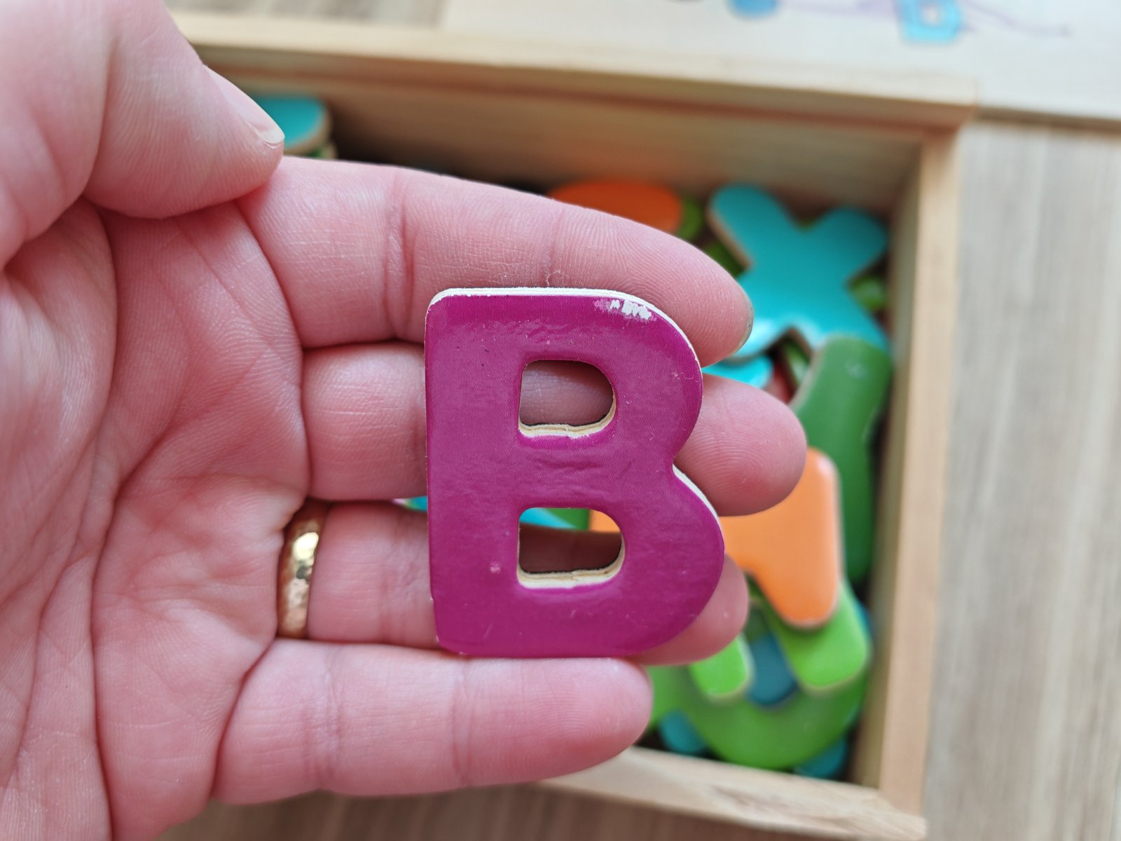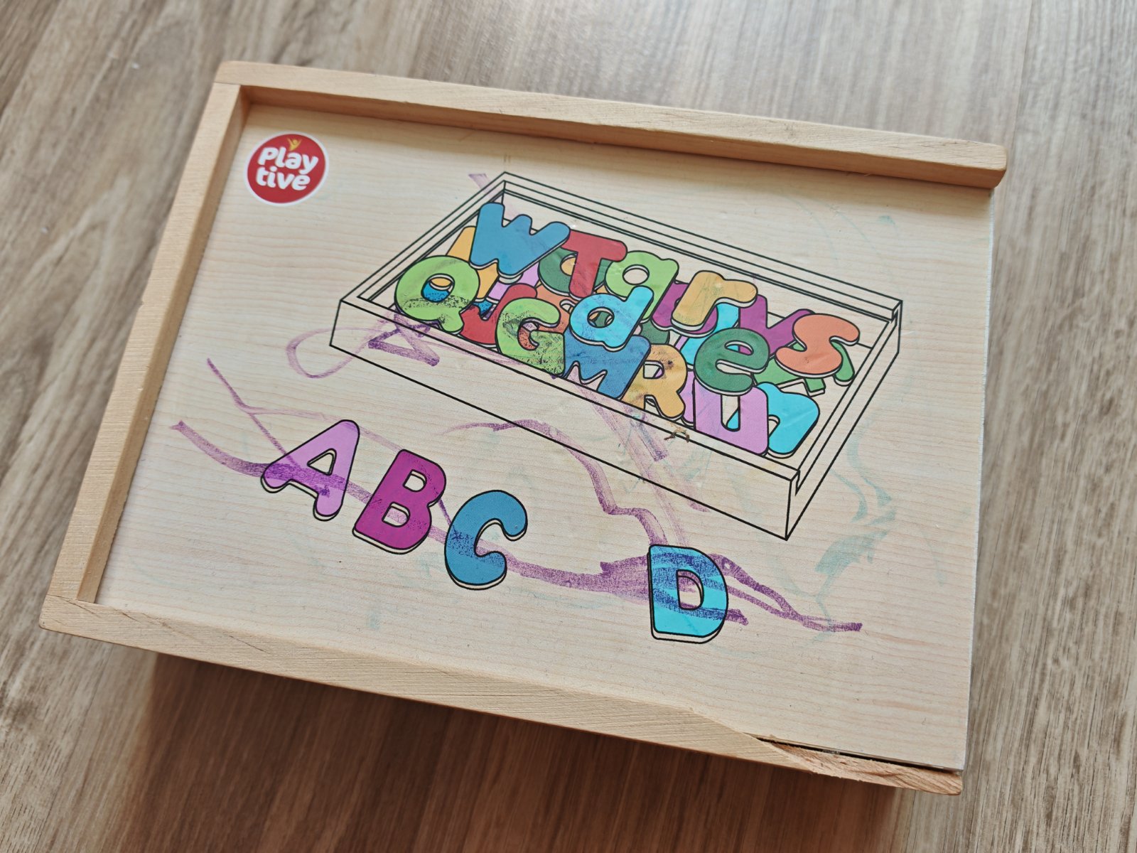 Drevená krabička trochu zničená 😅 šuchnutia sa nájdu aj na písmenách (ale tie neviem z akého sú materiálu)