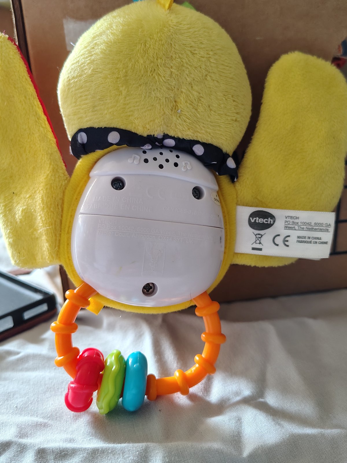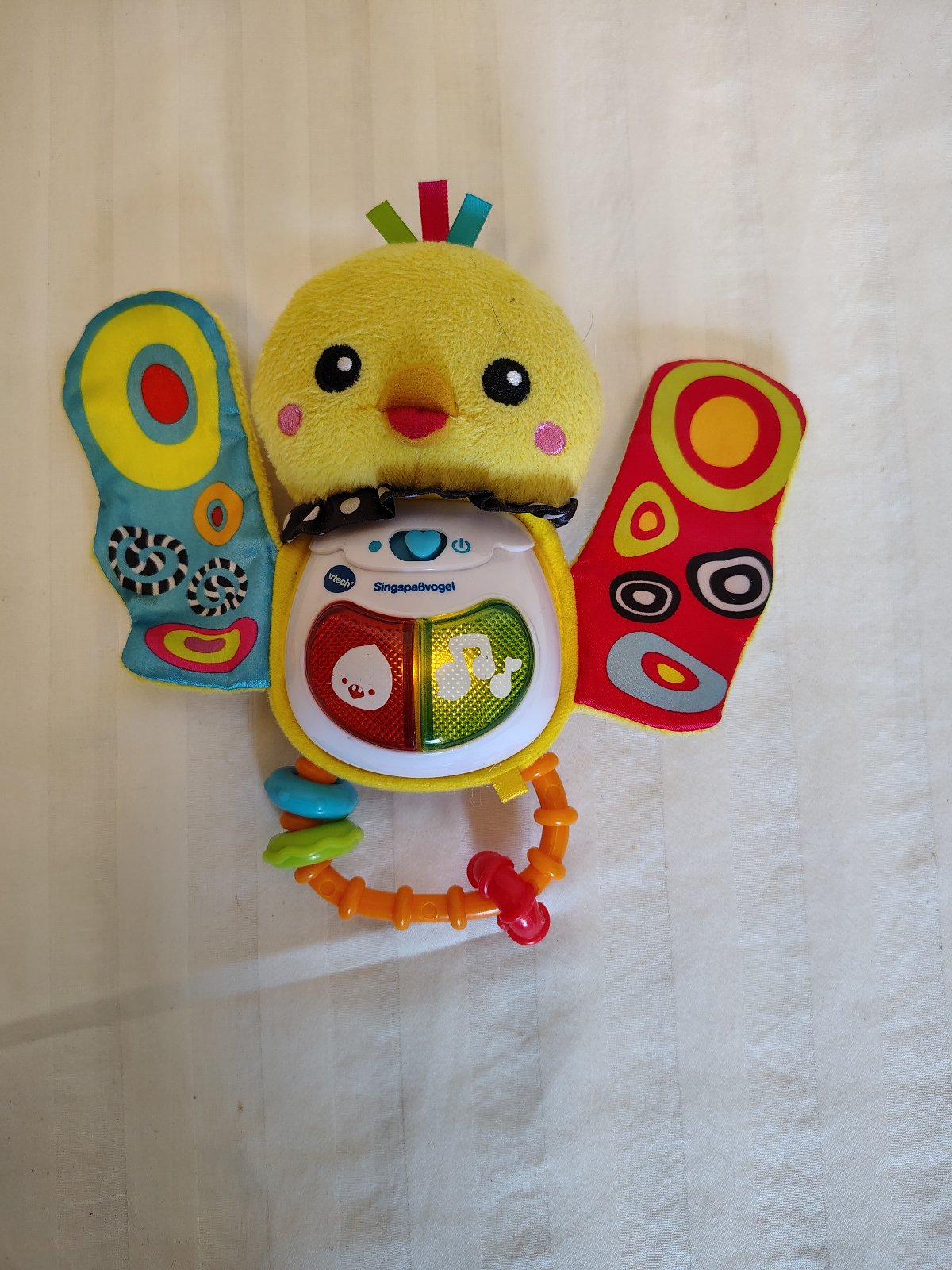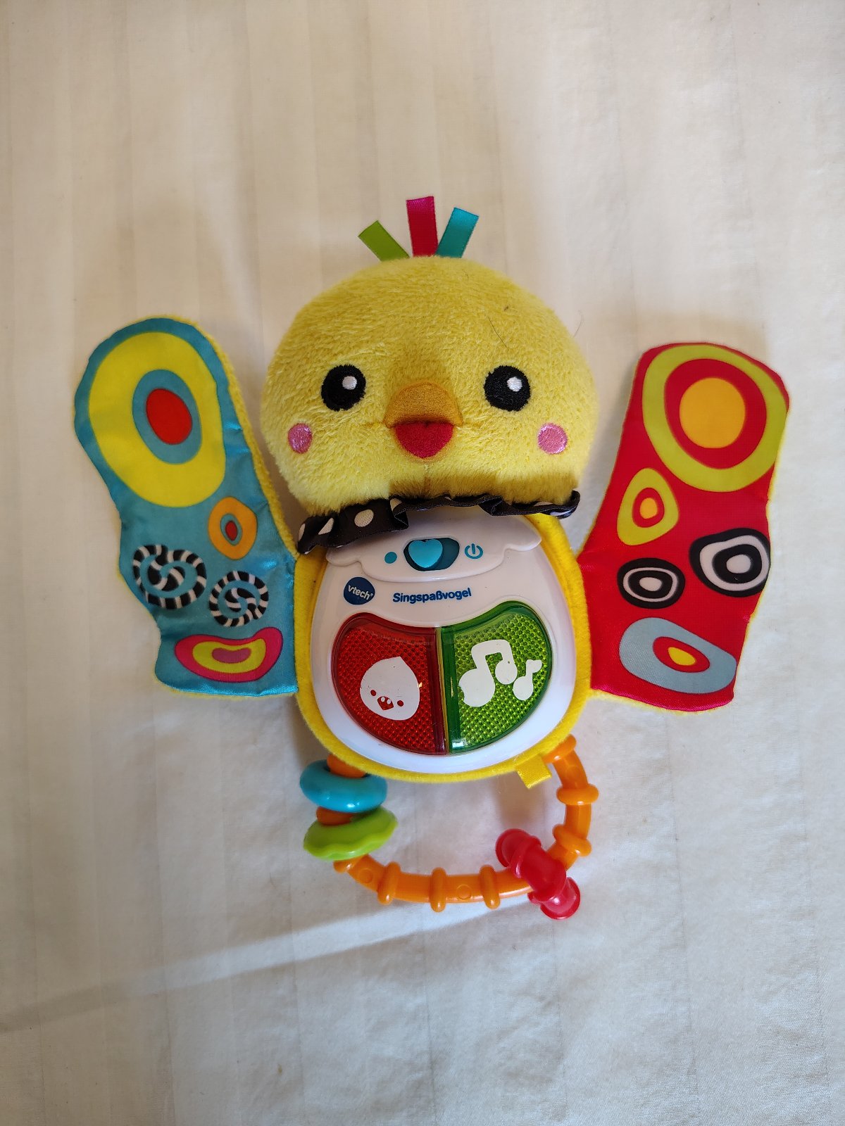 Interaktívny hudobný Vtáčik, VTech nemecká verzia, ide o interaktívnu hračku, hrkálku VTech Singspaßvogel. Je to ideálny spoločník pre bábätká od 3 mesiacov na stimuláciu zmyslov a motoriky.