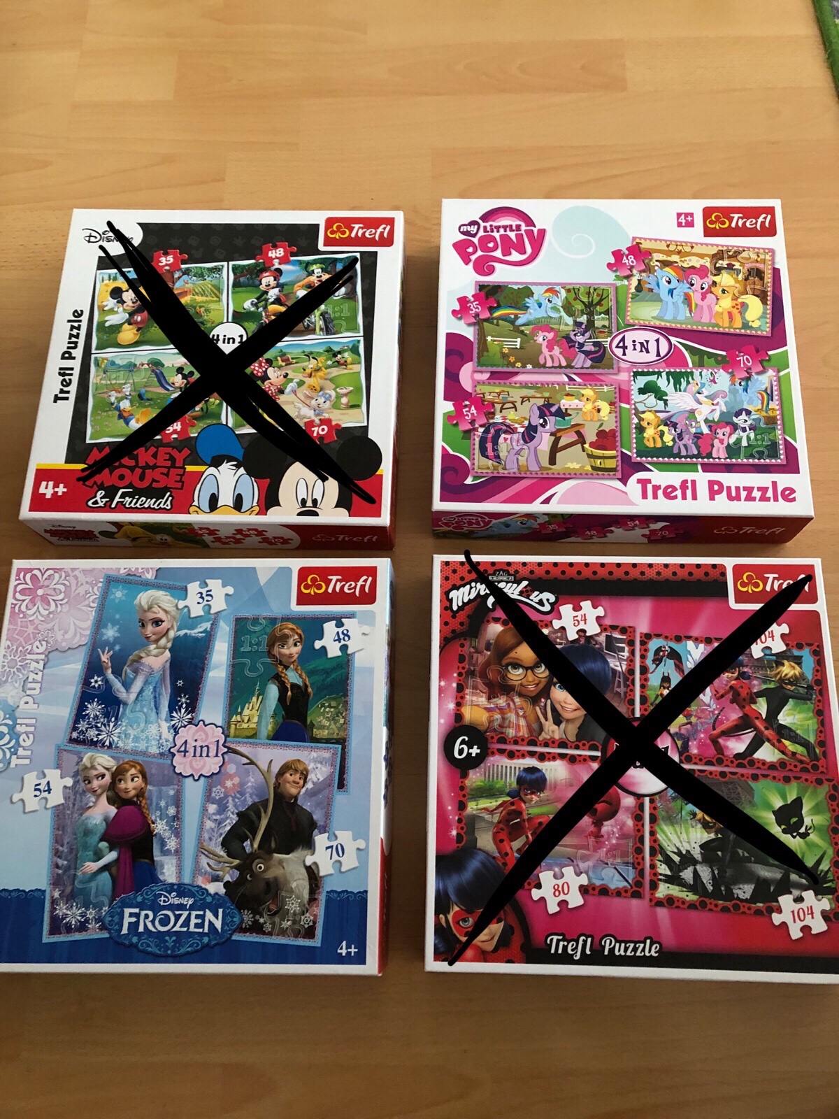 Puzzle Trefl 4v1 motiv My little pony, Frozen (ladove kralovstvo).