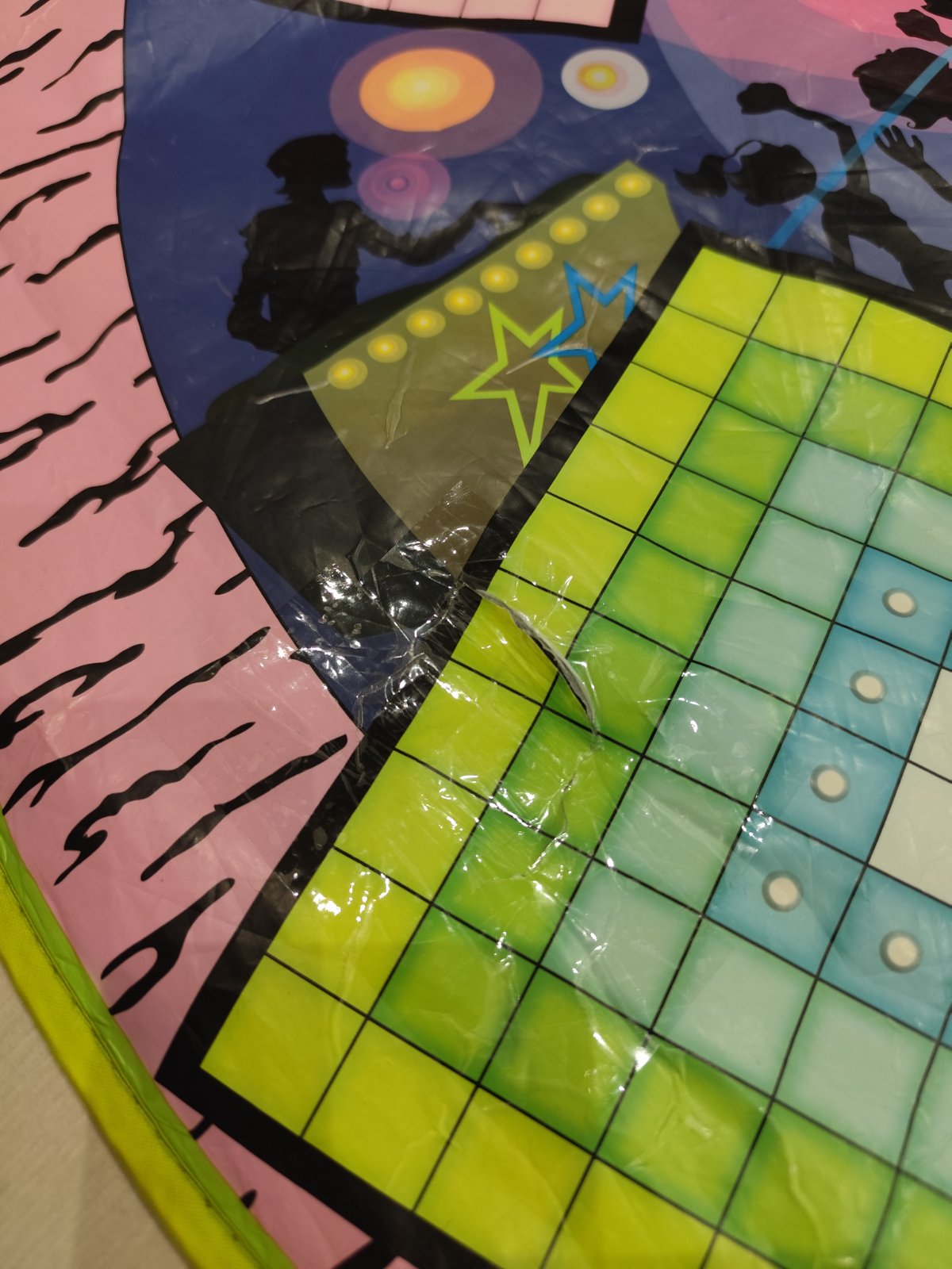 Predám hrací tanečný koberec plne funkčný.Ma známky používania,ale poslúži. Na jednom mieste trocha natrhnuté prelepené lepiacou páskou zohľadnené v cene. Pozri aj ďalšie moje inzeráty. Seriozne!!!