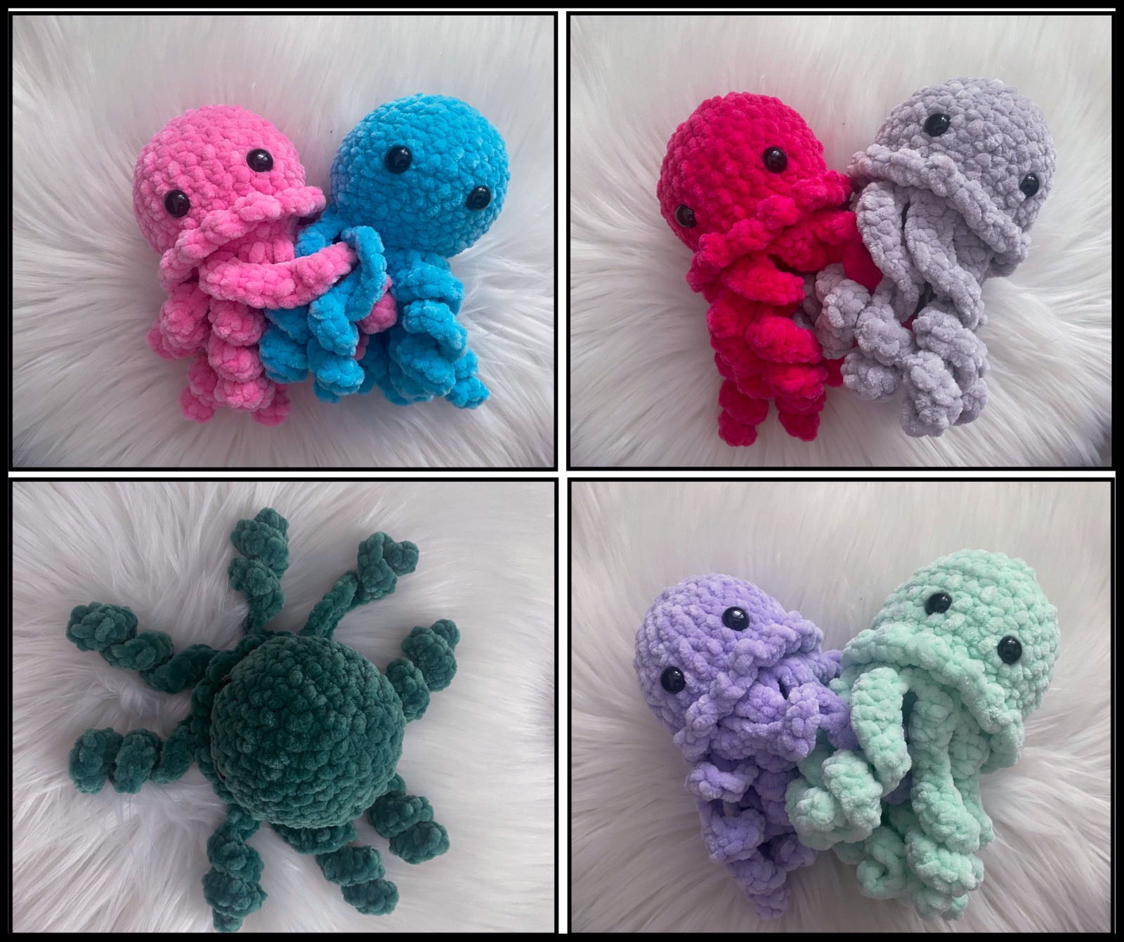 Háčkované chobotničky z jemnej nadýchanej vlny s bezpečnostnými očkami.