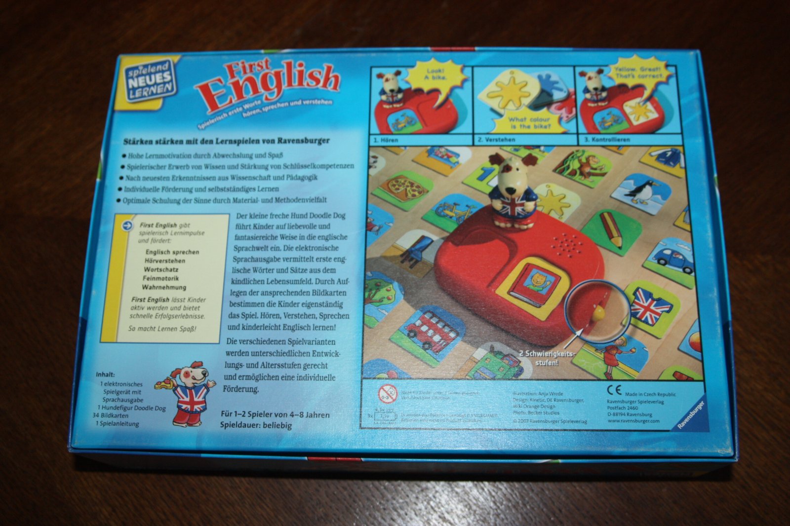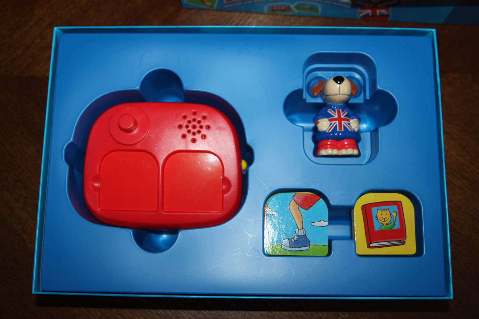Náučná hra s hovoriacim psíkom. Pre deti od 4 rokov. Super stav. Návod v nemčine, ale na hranie nemčina potrebná nie je - psík dáva úlohy v angličtine.