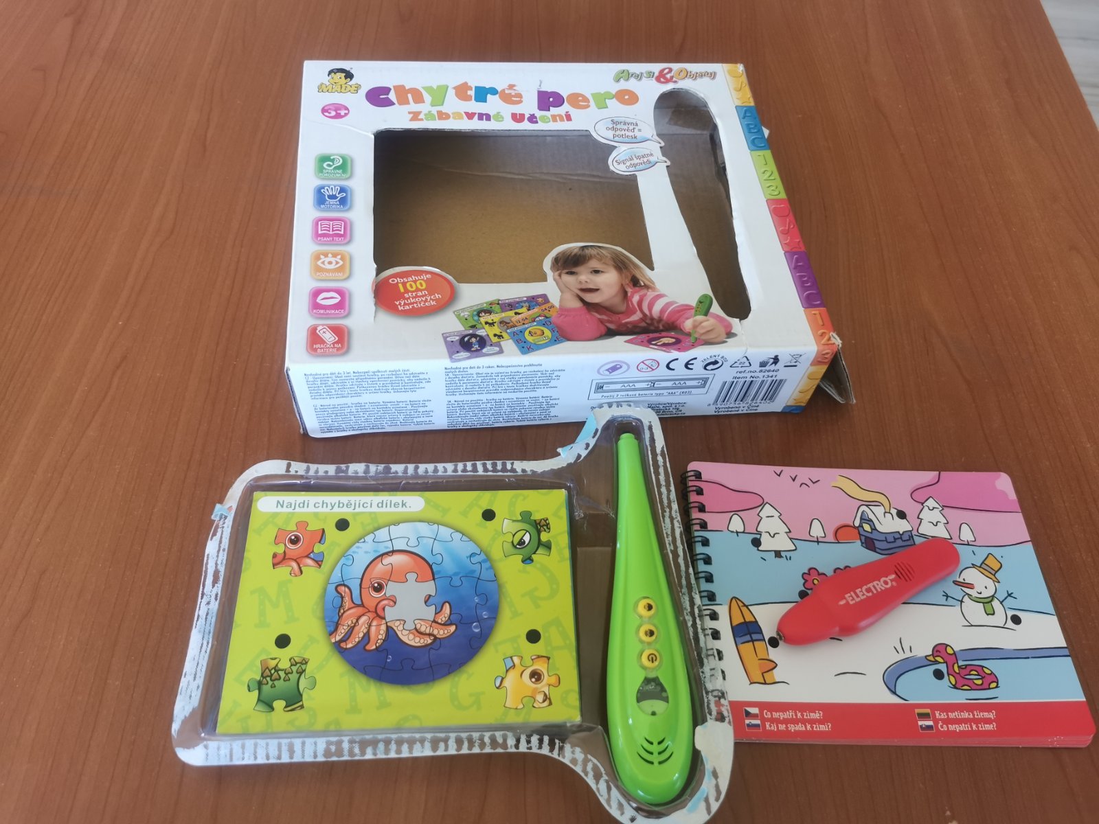 100 stran vyukovych karticiek, v pere treba vymenit baterky.
