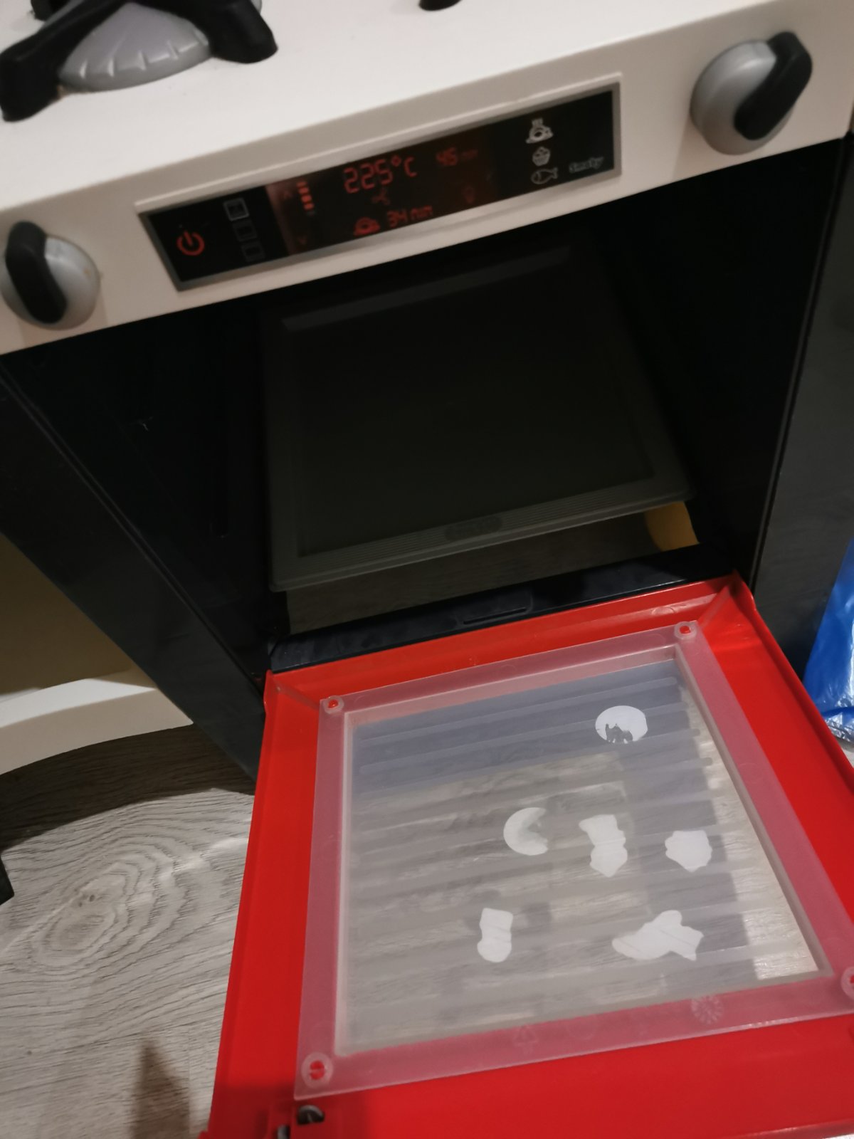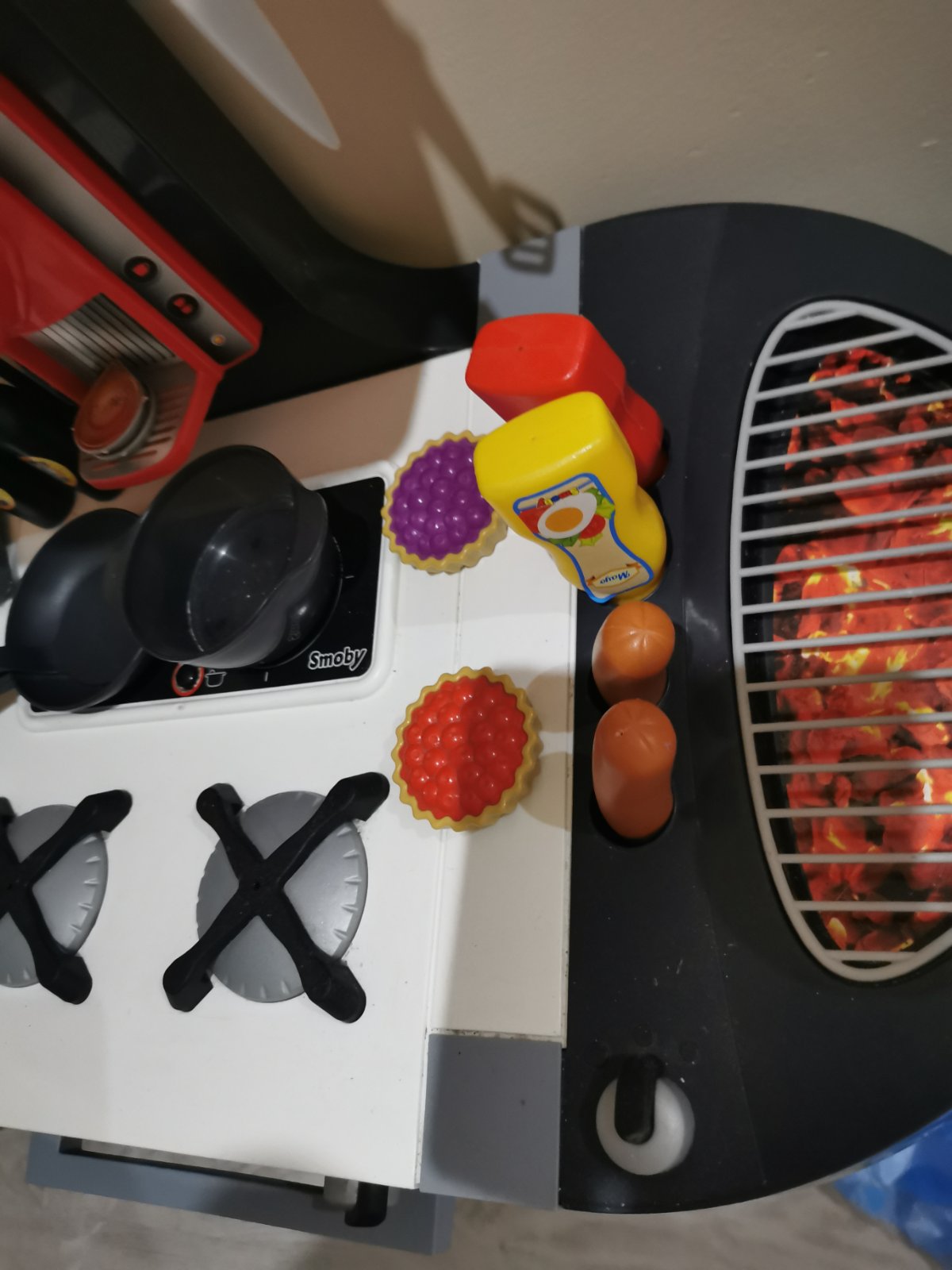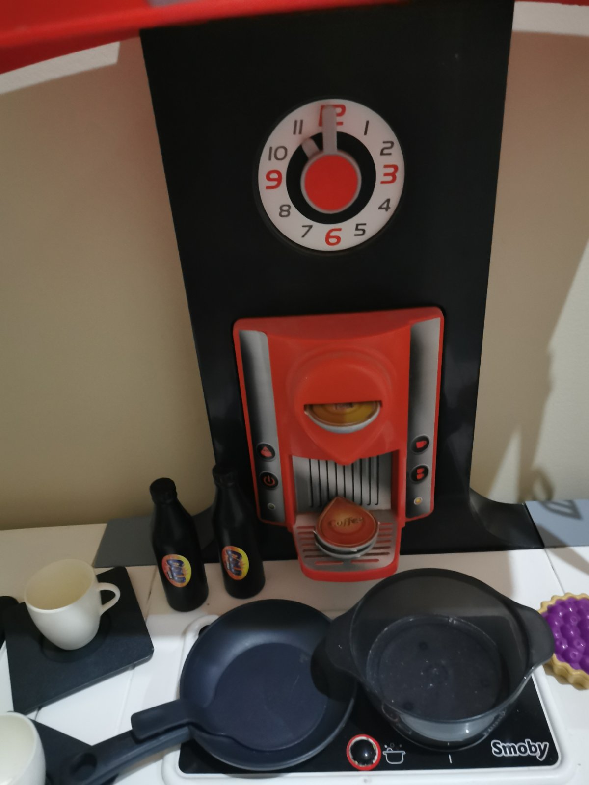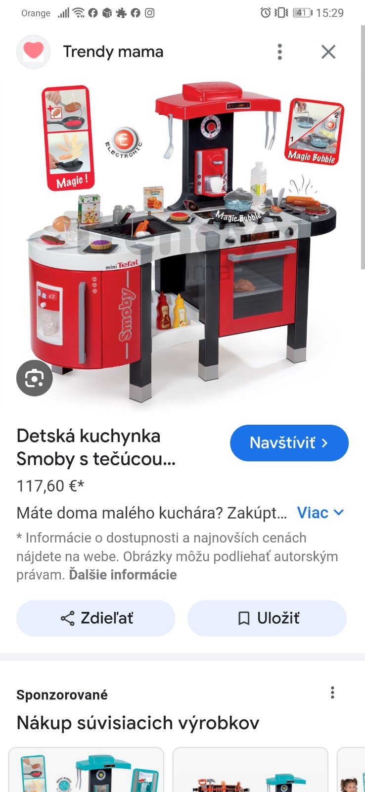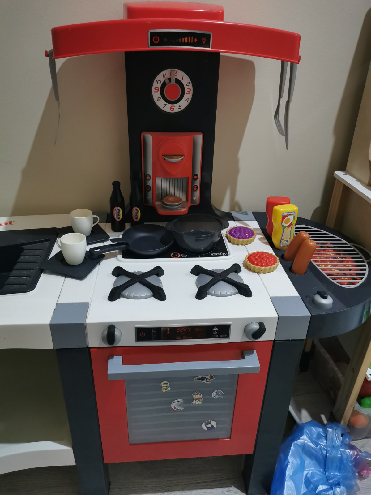 Detská kuchynka v top stave, bez poškodenia. Popis je aj medzi fotkami a rovnako aj rozmery. Kuchynka vydáva zvuky varenia, obsahuje drez, gril, chladničku s výrobníkom ľadu, rúru, kávovar. Voda či funguje neviem, ny sme vodu nikdy nedávali. PC 110€. Súčasťou kuchynky sú kapsule do kávovaru, kečup, horčica, šálky na kávu, tanieriky, koláčiky, kocky ľadu, vajíčka, panvica a hrniec s pokrievkou, naberačku, vidličku, nôž, nápoje.