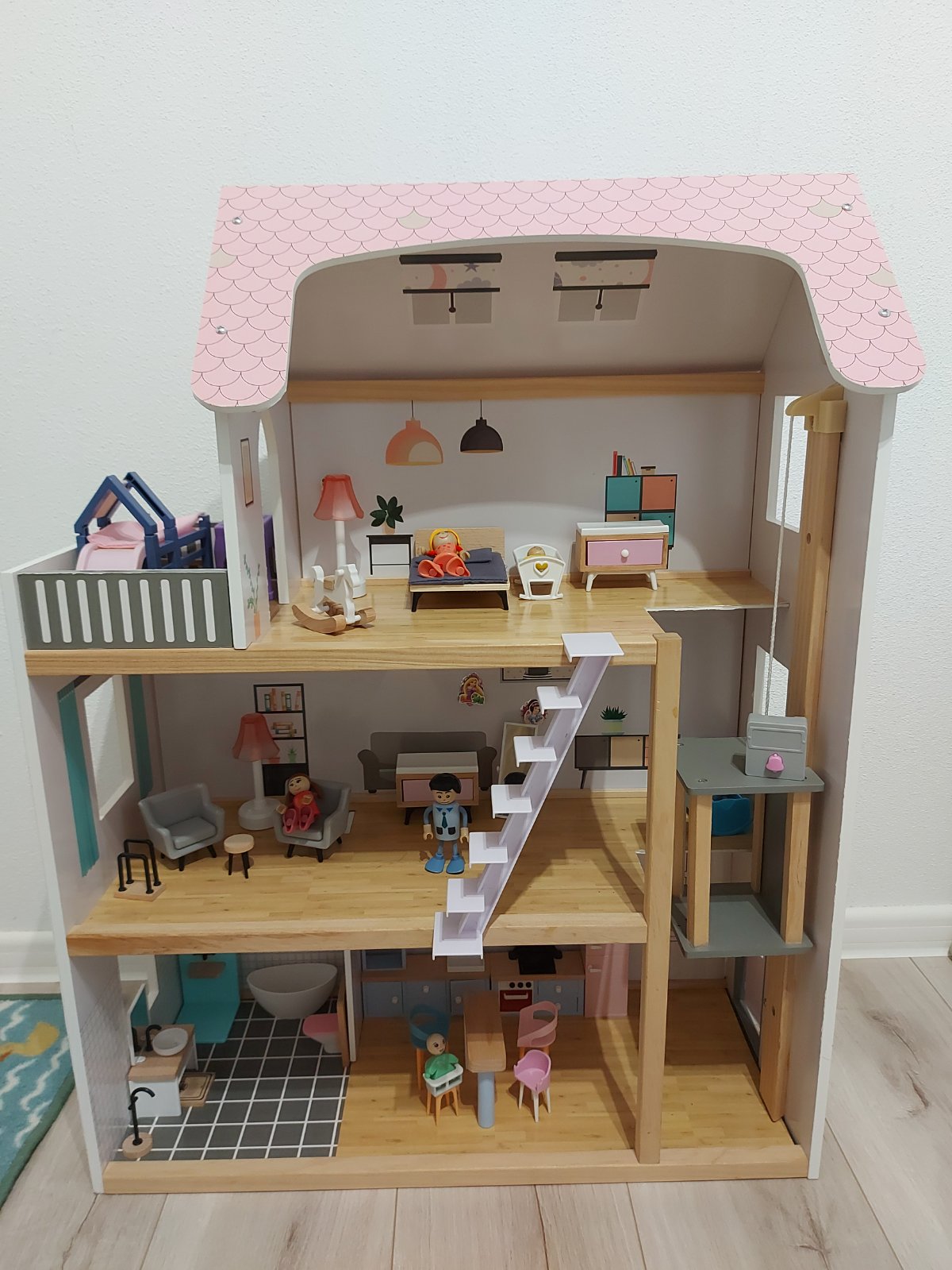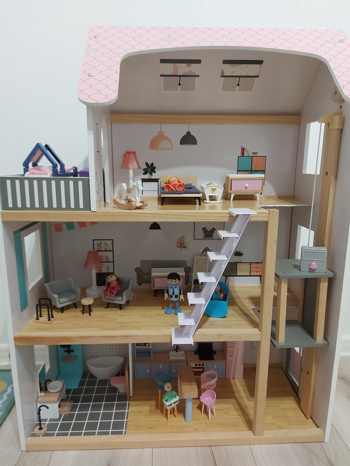 Predám veľký domček pre bábiky v top stave, svetielka svietia, zvonček zvoni len treba vymeniť baterky. Predám komplet ako na foto, pôvodná cena bola cez 80€ , je tam dokupena jedna sada nábytku navyše:) osobne odber Ruzomberok, Liptovsky mikulas