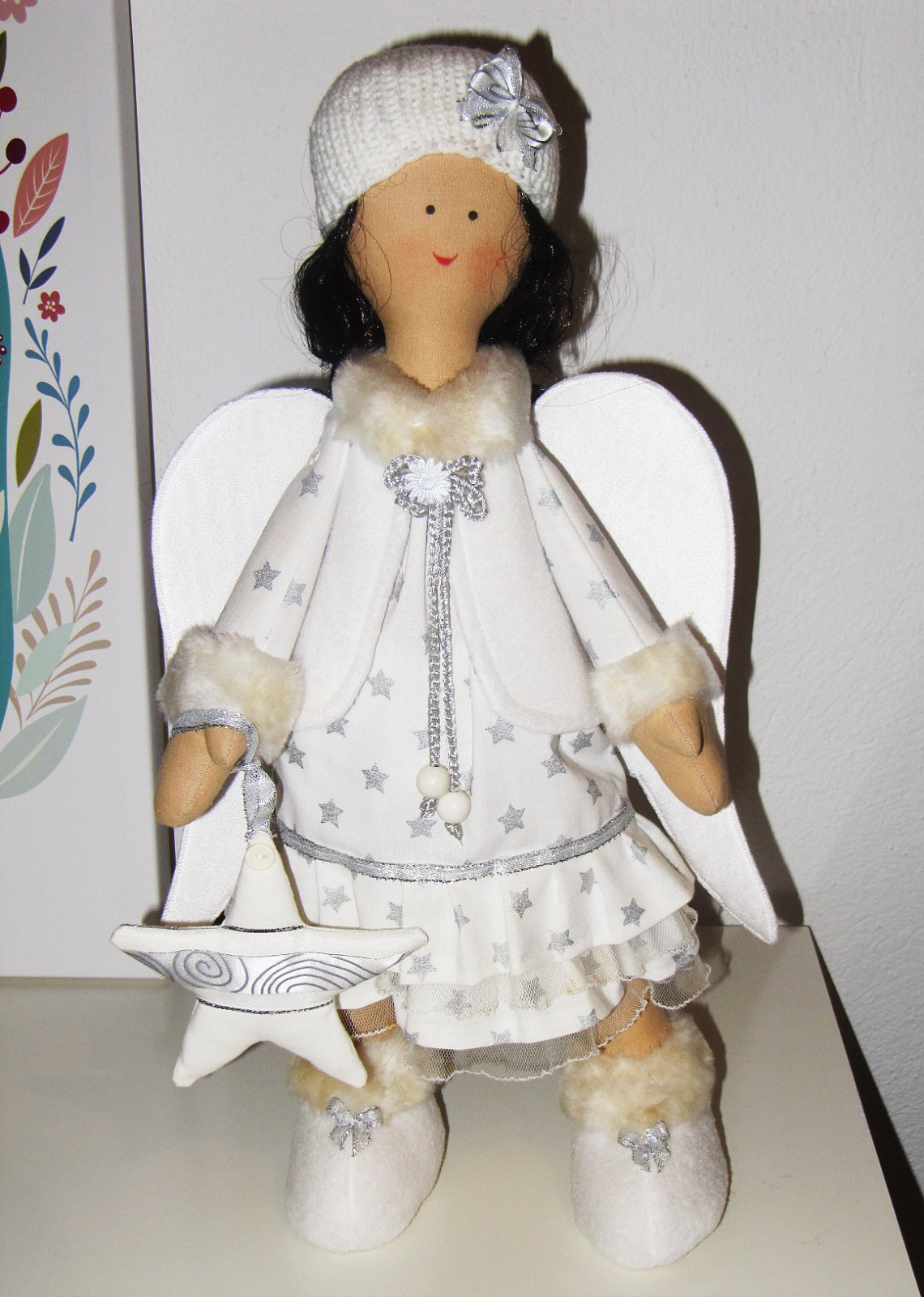 Mám na predaj bábiku anjela. Bola zakúpená od pani, ktorá vyrába a šije takéto handmade bábiky. Vysoká je 55 cm. POZOR ! : bábika sa predáva bez tej hviezdy na ruke. Poštovné je 4 eur platba vopred na účet alebo osobný odber.