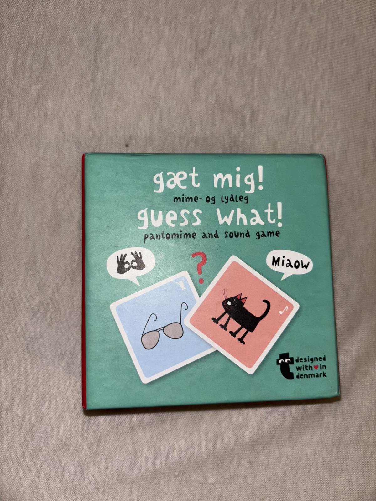 Bez známok hrania, bez navodu, podľa druhu kartičky sa napodobňujú buď zvuky alebo tvary, krabička je poskriabana od psa