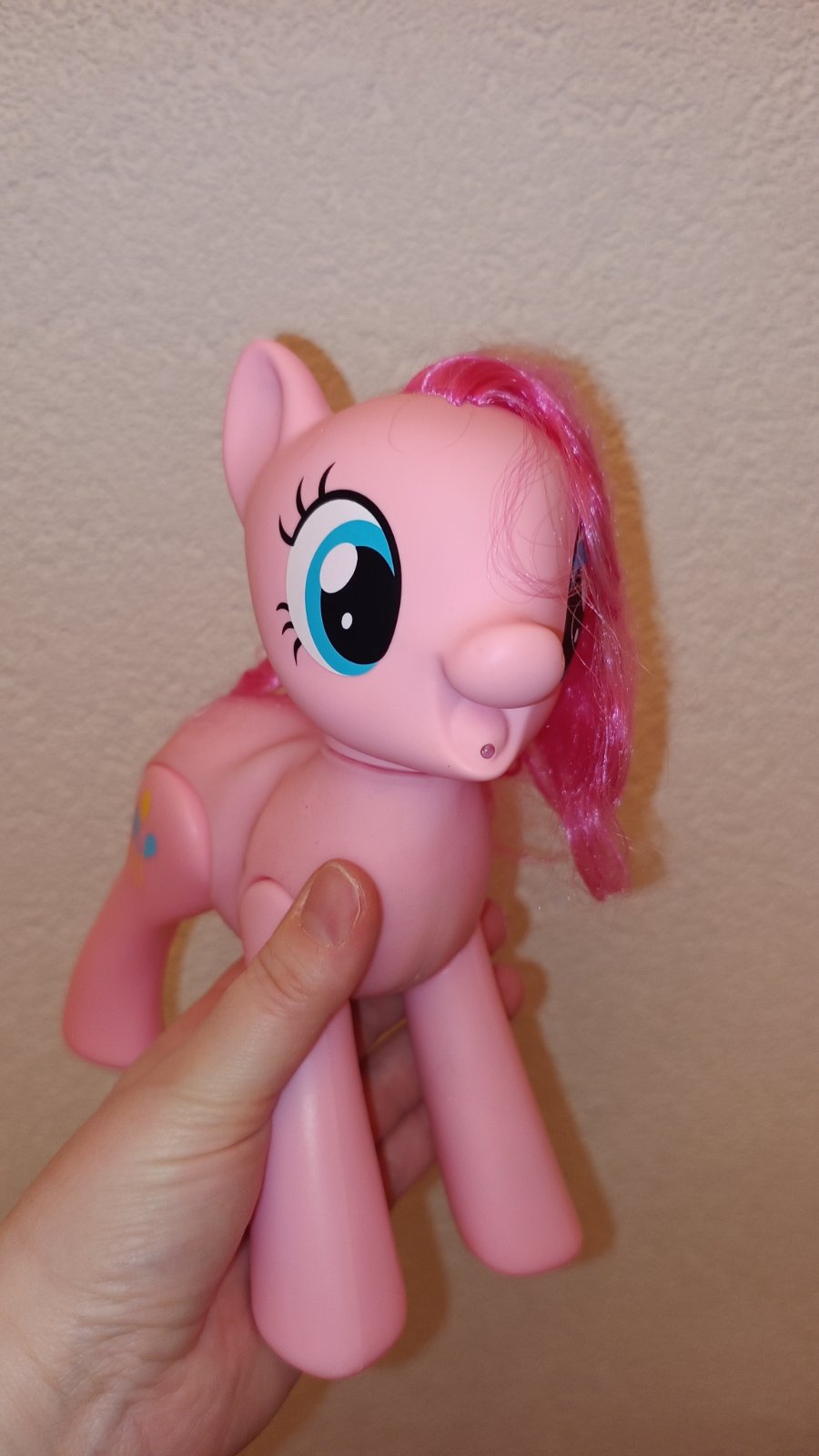 Koník Pinkie Pie.Chodí,vydáva zvuky,smeje sa pri šteklení. Výška 21 cm. Použitý asi 1x.