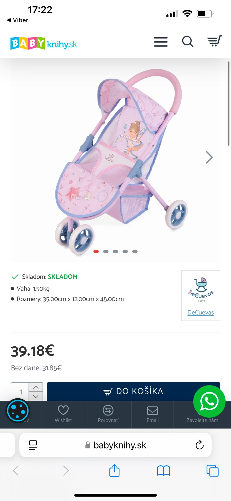 PC 39€,predám úplne nový,ešte zabalený športový kočík pre bábiky,krásny,španielsky dizajn,my sme dostali od ježiška dva rovnaké🙈,kupovaný na babyknihy,info o kočíku medzi fotkami,NEVYMIEŇAM!25€+pošta