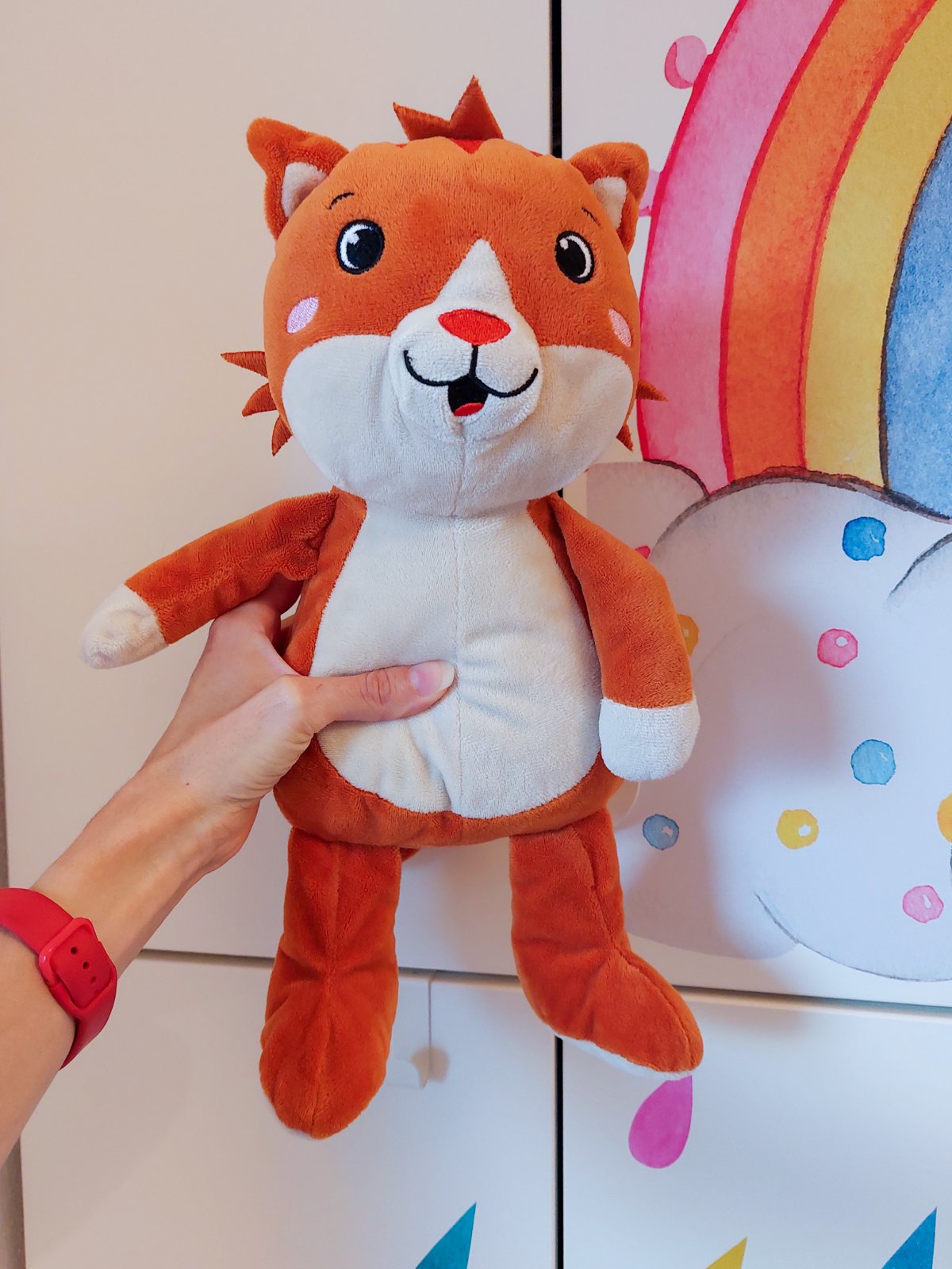 Značka Fisher price. Hrá upokojujúce melódie, bruško sa pohybuje hore dole, lampa svieti, hračka dýcha, bije mu srdiečko. Toto všetko sa dá zvlášť vypínať podľa potreby. Super pomôcka na zaspávani...