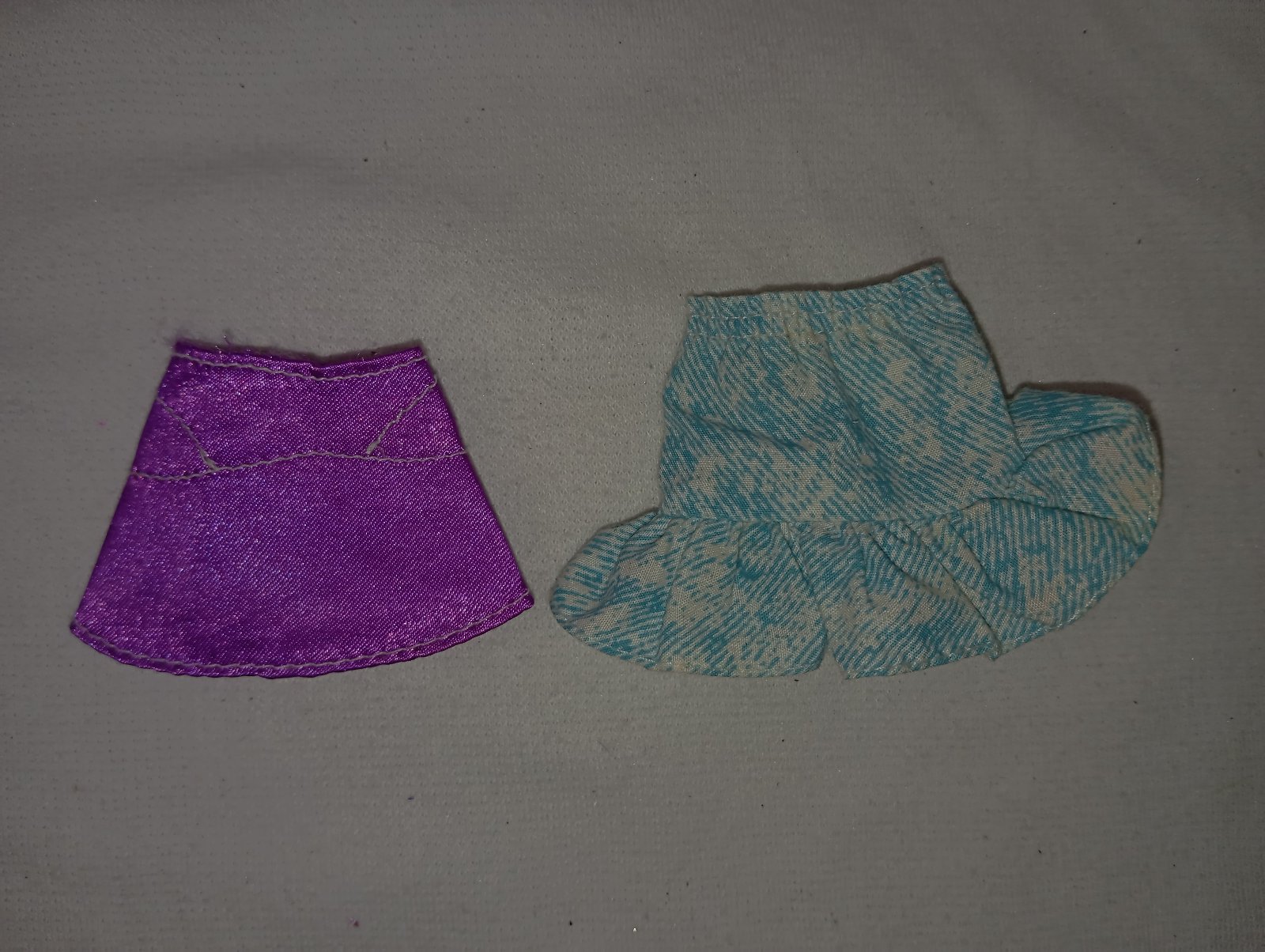 2. bledomodrá šukňa z retro Barbie. Vhodná pre Barbie Model Muse alebo pre retro Barbie z 80/90-tych rokov, ktoré majú tenký pás. Suchý zips drží. 13,80€