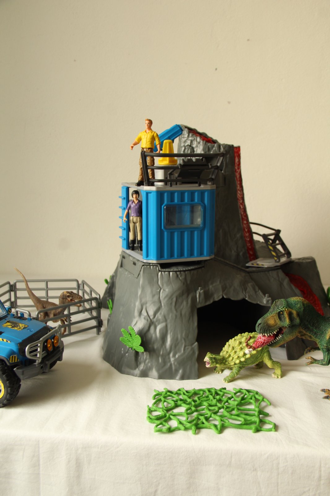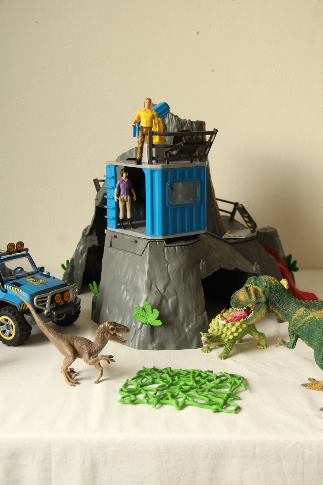 S terénnym vozidlom sa Luis dostane na detašované stanovište a tam odchytí raptora pomocou mäsitej návnady. Pre prípad, že po ceste uviazne v bažine, môže pomocou sady náradia ľahko vymeniť pneumatiku. Terénne vozidlo a základne zo Schleich® Dinosaurs ponúkajú veľa herných možností.