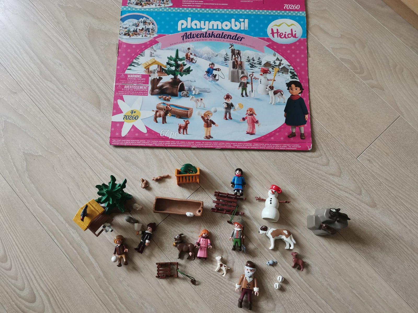 2 sady od Playmobil s tematikou Heidi, jedna je adventný kalendár a druhá je Petrov kozí chlievik, čísla 70255 a 70260. Z jedného chýba metla, ale ináč kompletné a málo hrané. Cena spolu.