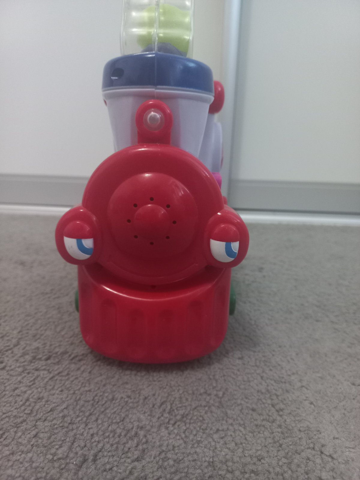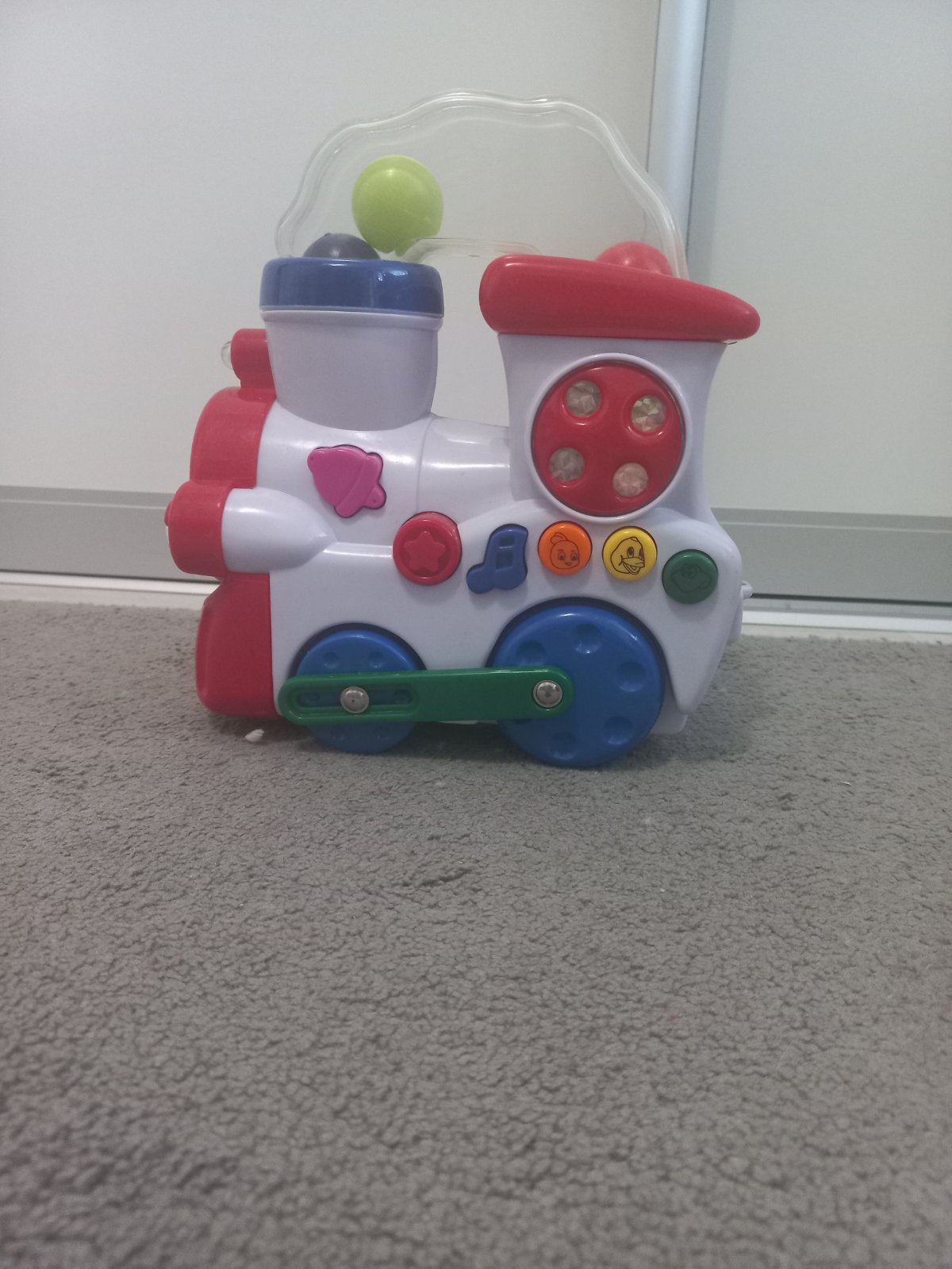 Vláčik je na baterky,vydáva zvuky,jazdí.Baterky niesú súčasťou tejto ponuky.Nieje poškdený plasty niesú polámané.
