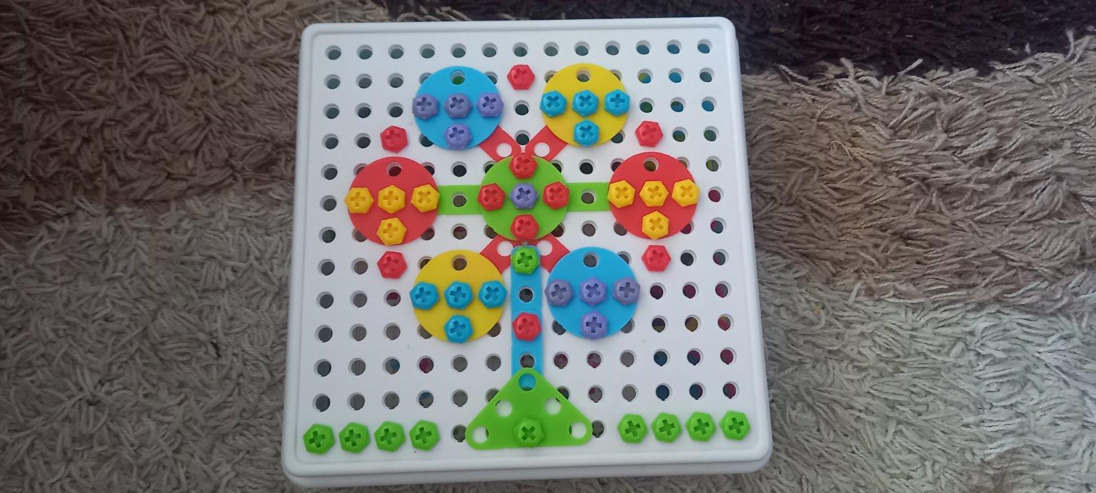 V dobrom hranom stave, dajú sa robiť obrázky podľa predlohy, alebo vymýšľať vlastne, chyba jeden žltý trojuholník, jeden modry srob a jeden fialový srob