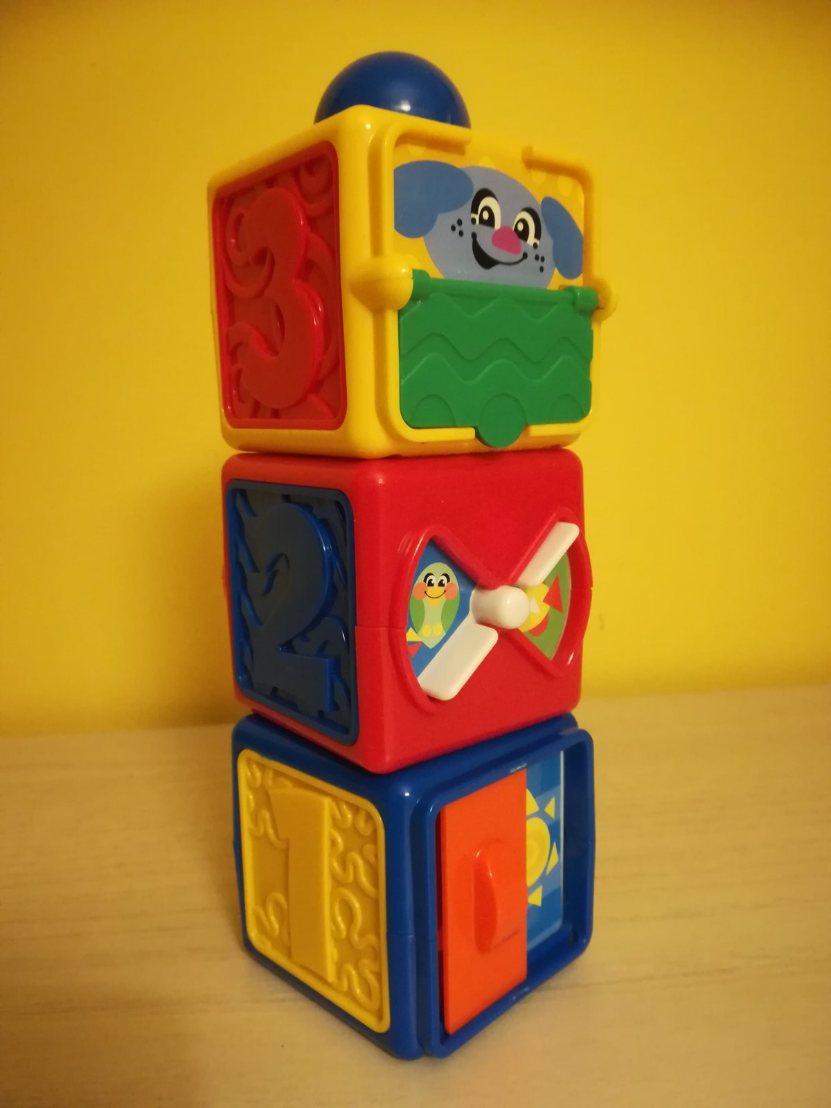 Predáme kocky Fisher Price. Sú interaktívne, dajú sa na nich otáčať okienka, po stlačení loptičky sa na každej otočí jedna hrajúca časť. Dá sa s nimi všeličo naučiť, rozvíjať jemnú motoriku, rozvíjať zmyslove vnimanie a rozprávať o rôznych témach - farby, tvary, slnko, mesiac, čísla, pohyb, zvuky,...